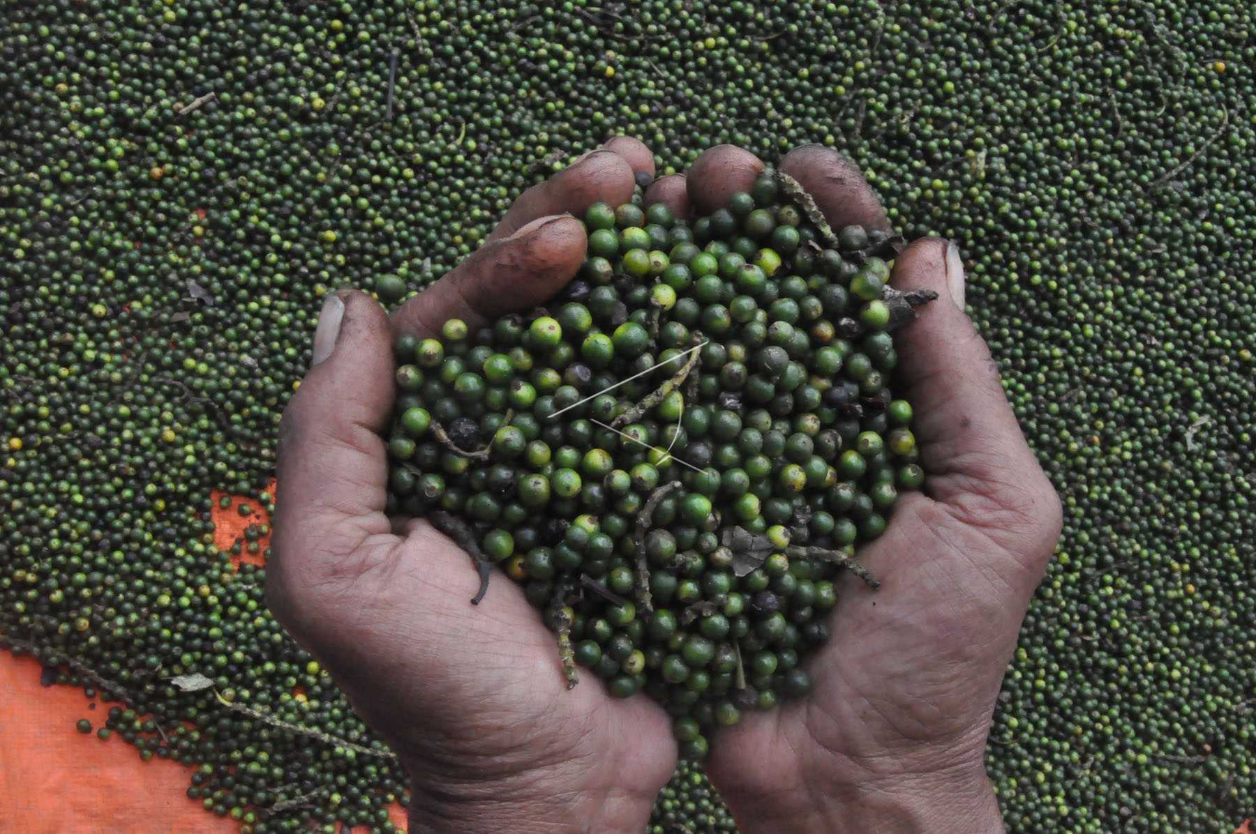 Petani menunjukkan lada jenis Jambi yang sedang dijemur di Waymengaku, Balikbukit, Lampung Barat, Lampung, Sabtu (1/9/2012). ANTARA FOTO/Gatot Arifianto/pras.