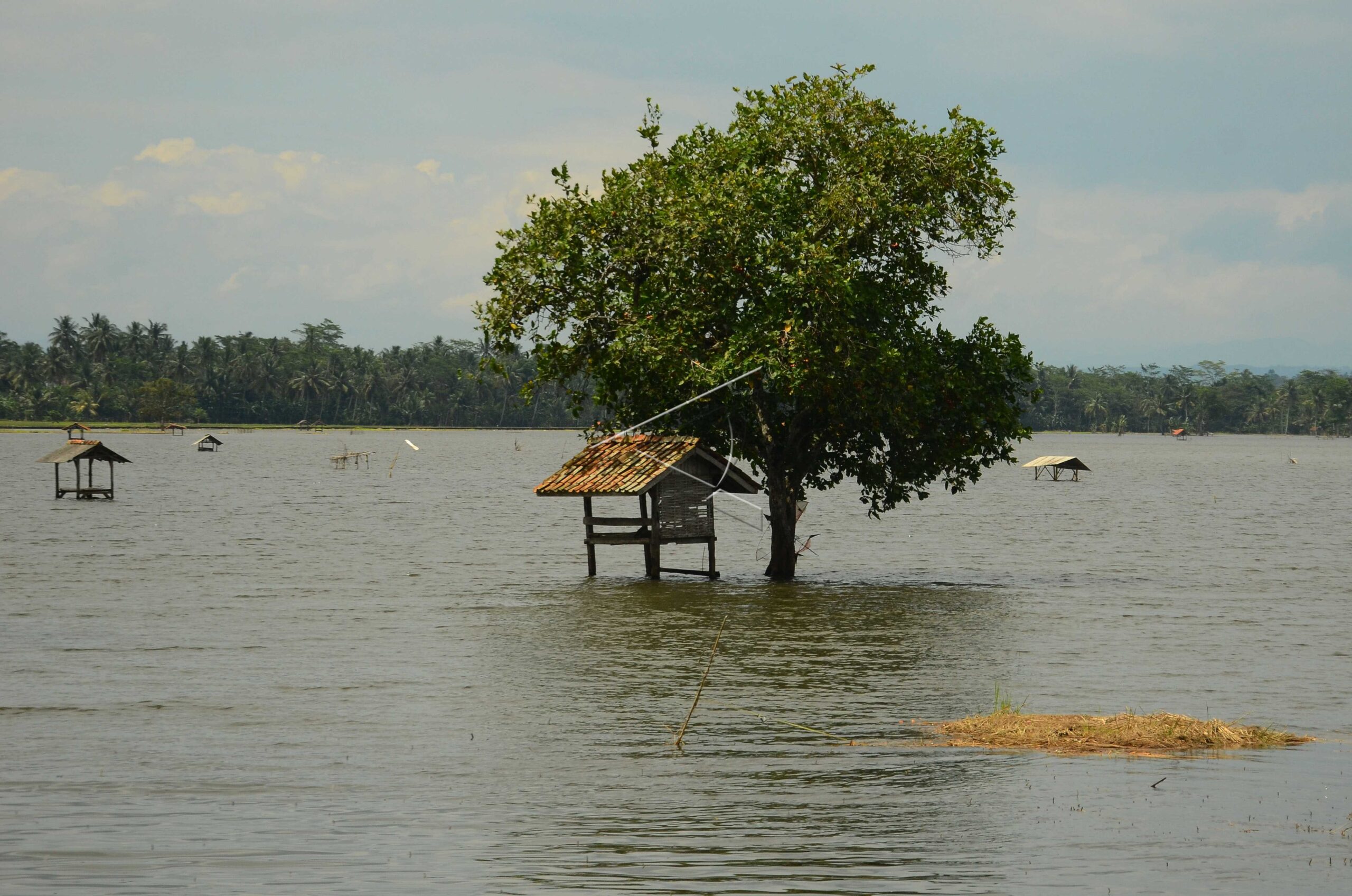 Gubuk milik petani dan lahan pertanian di sekelilingnya terendam banjir akibat luapan Sungai Citanduy sehingga mengakibatkan gagal panen di Kampung Tunggilis, Kecamatan Padaherang, Kabupaten Pangandaran, Jawa Barat, Kamis (29/9/2016). ANTARA FOTO/Adeng Bustomi/kye/dw/nym.