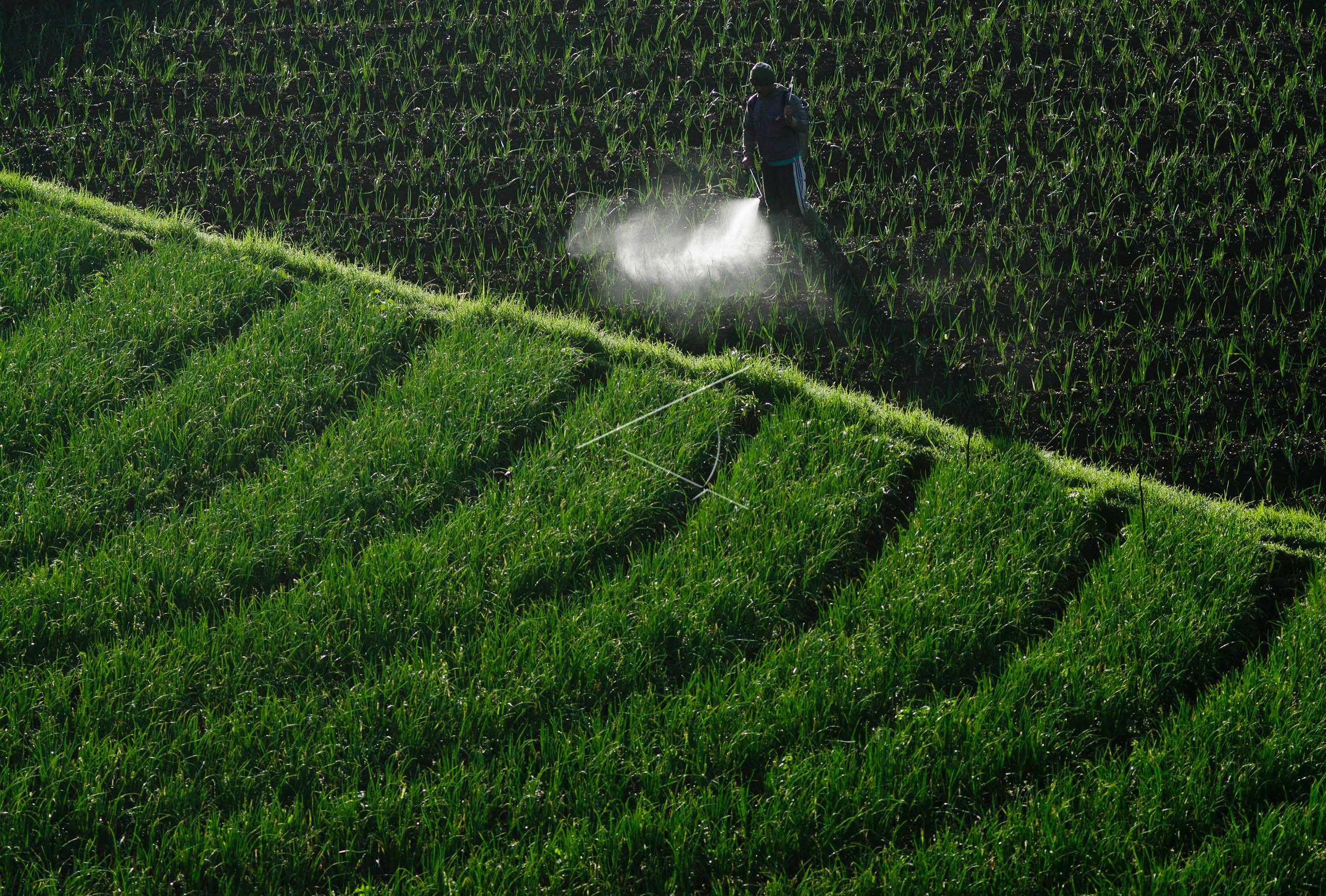 Petani menyemprot pembasmi hama pada tanaman sayuran di lereng Gunung Lawu, Gondosuli, Tawangmangu, Karanganyar, Jateng, Minggu (23/12/2012). ANTARA FOTO/Andika Betha.