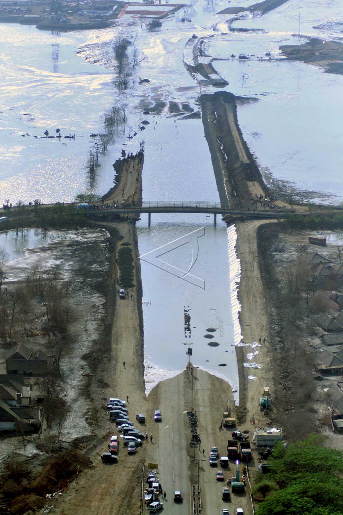Lumpur panas PT Lapindo Brantas Inc meluber setelah meledaknya pipa gas Pertamina dekat sumber semburan lumpur sehingga tanggul utama penahan sumber semburan jebol dan mengakibatkan korban jiwa delapan orang meninggal, sejumlah orang hilang, puluhan luka-luka, serta menggenangi jalan akses Tol Porong, di Sidoarja, Jawa Timur, Kamis (23/11/2006). ANTARA FOTO/Eric Ireng/asf/tom.