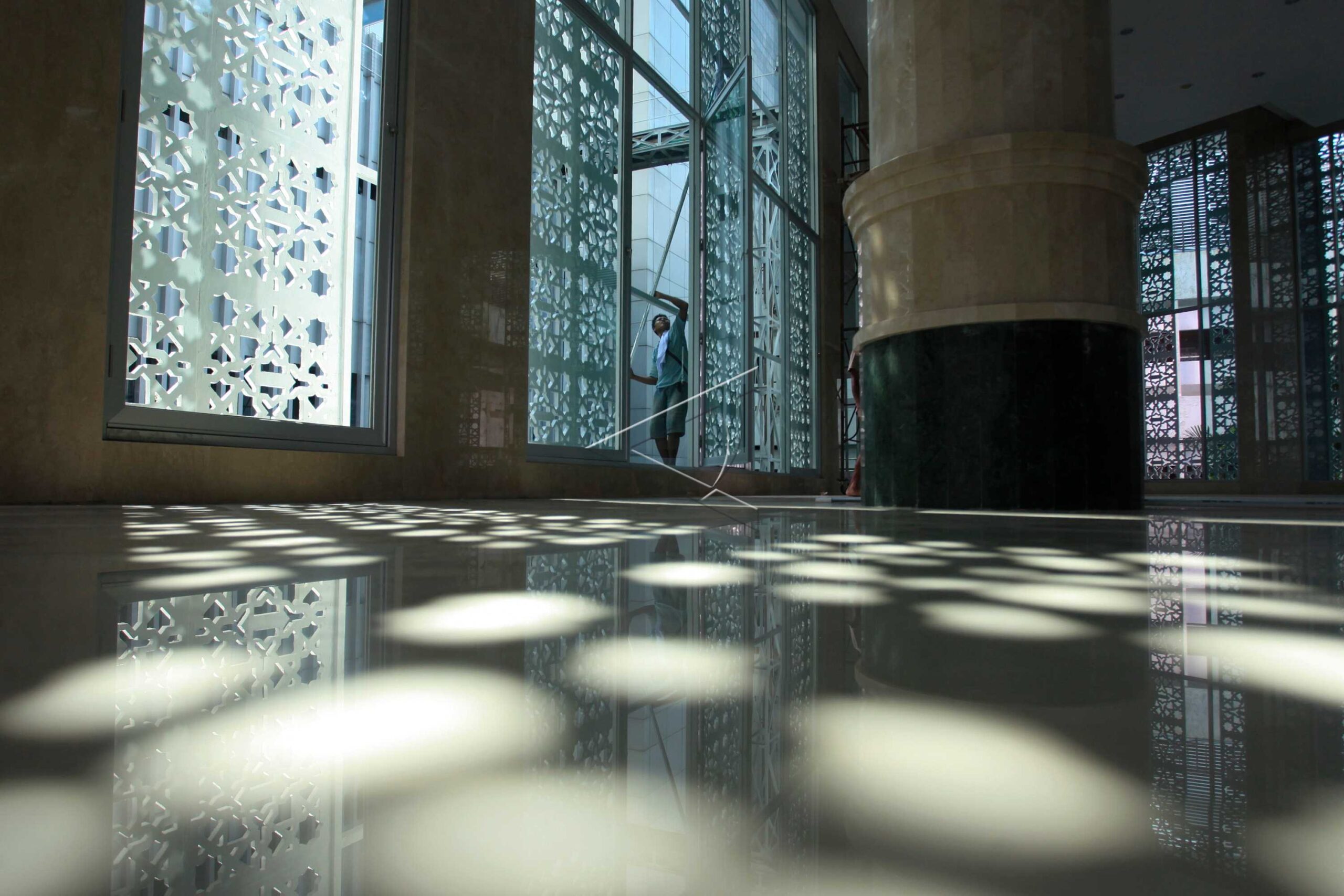 Pekerja menyelesaikan pembangunan masjid di kompleks Balaikota DKI Jakarta, Jumat (8/1/2016). ANTARA FOTO/Muhammad Adimaja/dw/tom.