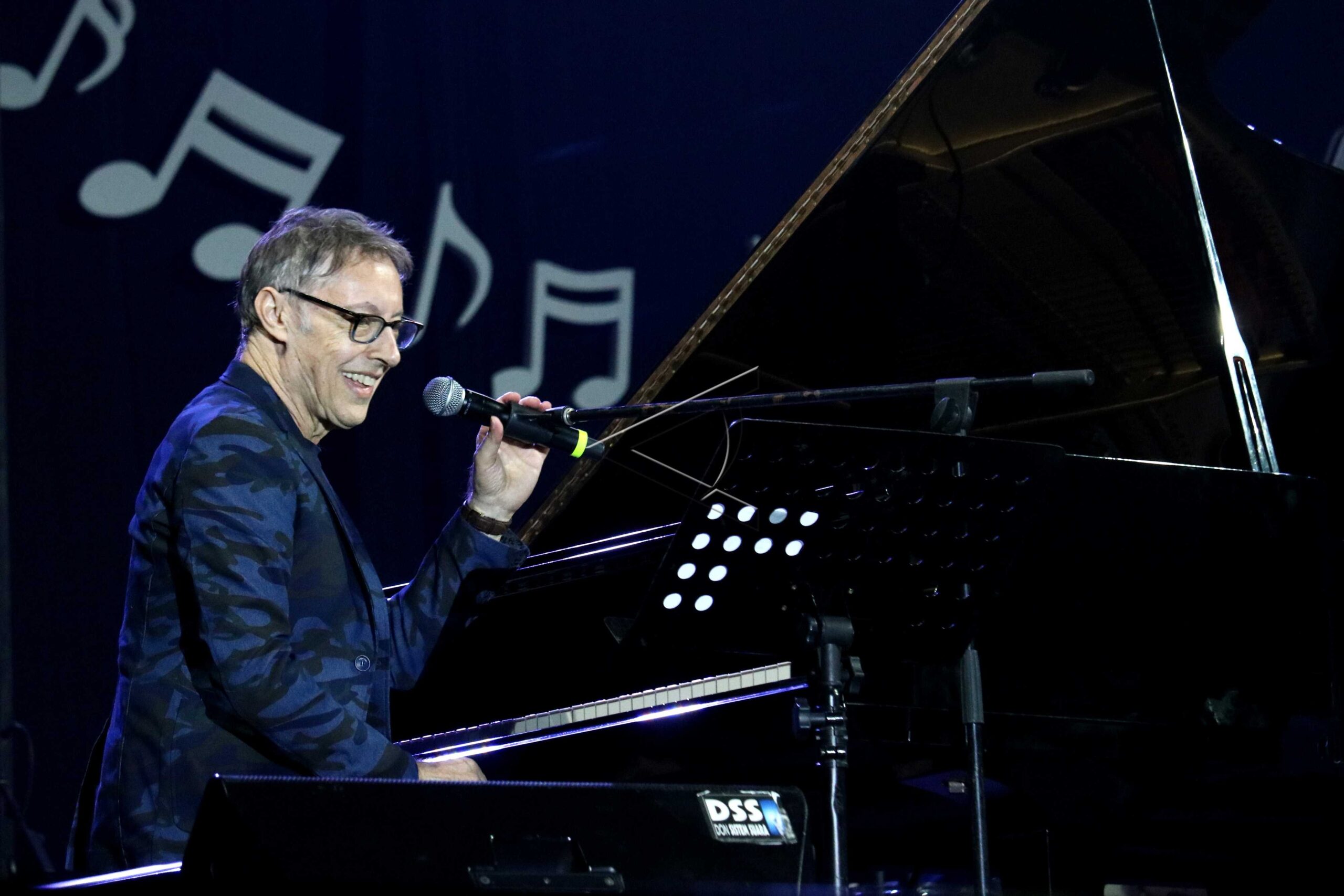Musisi jazz Tom Grant menghibur penonton saat Jazz Traffic Festival 2018 di Surabaya, Jawa Timur, Sabtu (25/8/2018). ANTARA FOTO/Didik Suhartono/ama/dw/wpa.