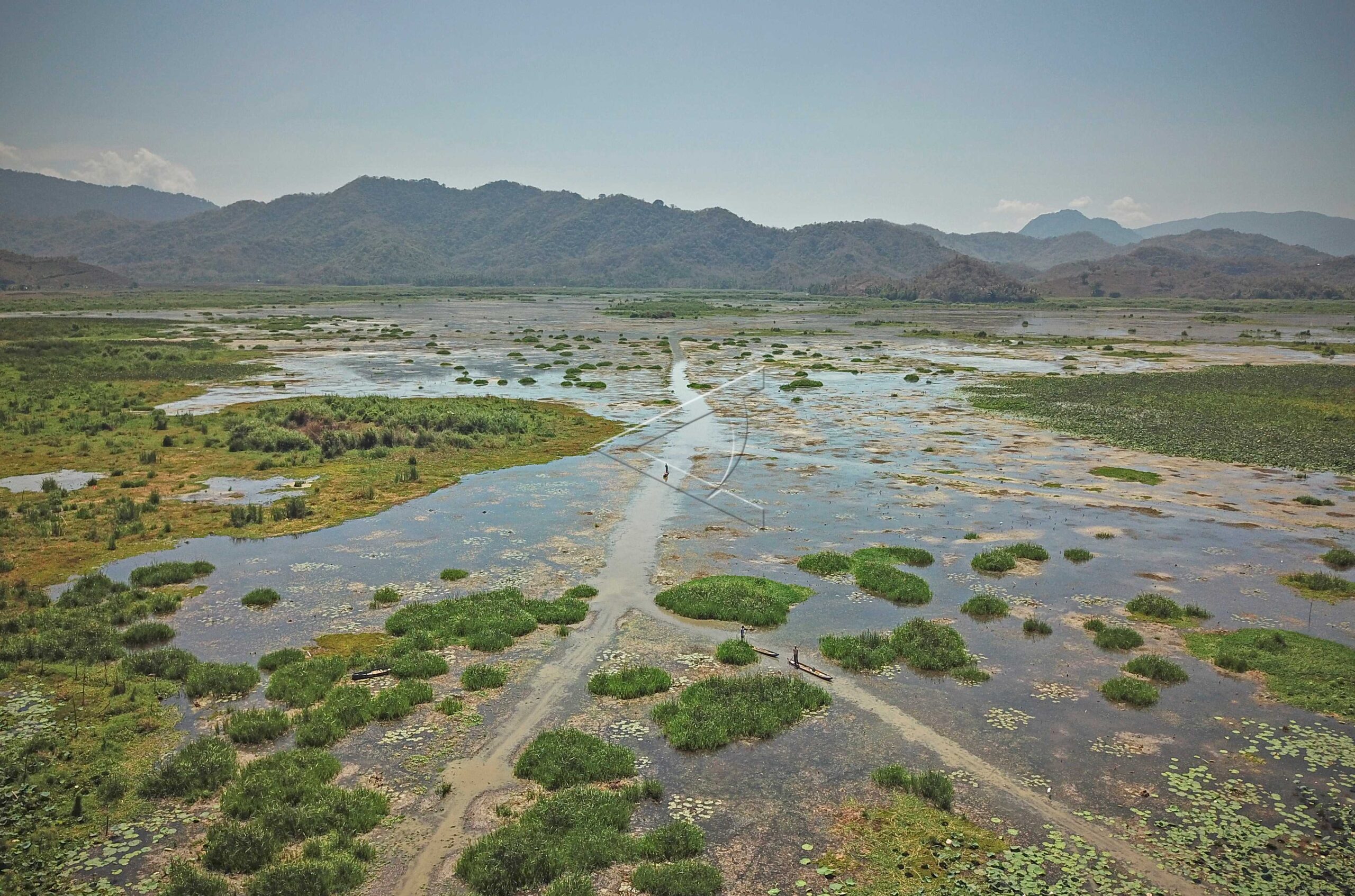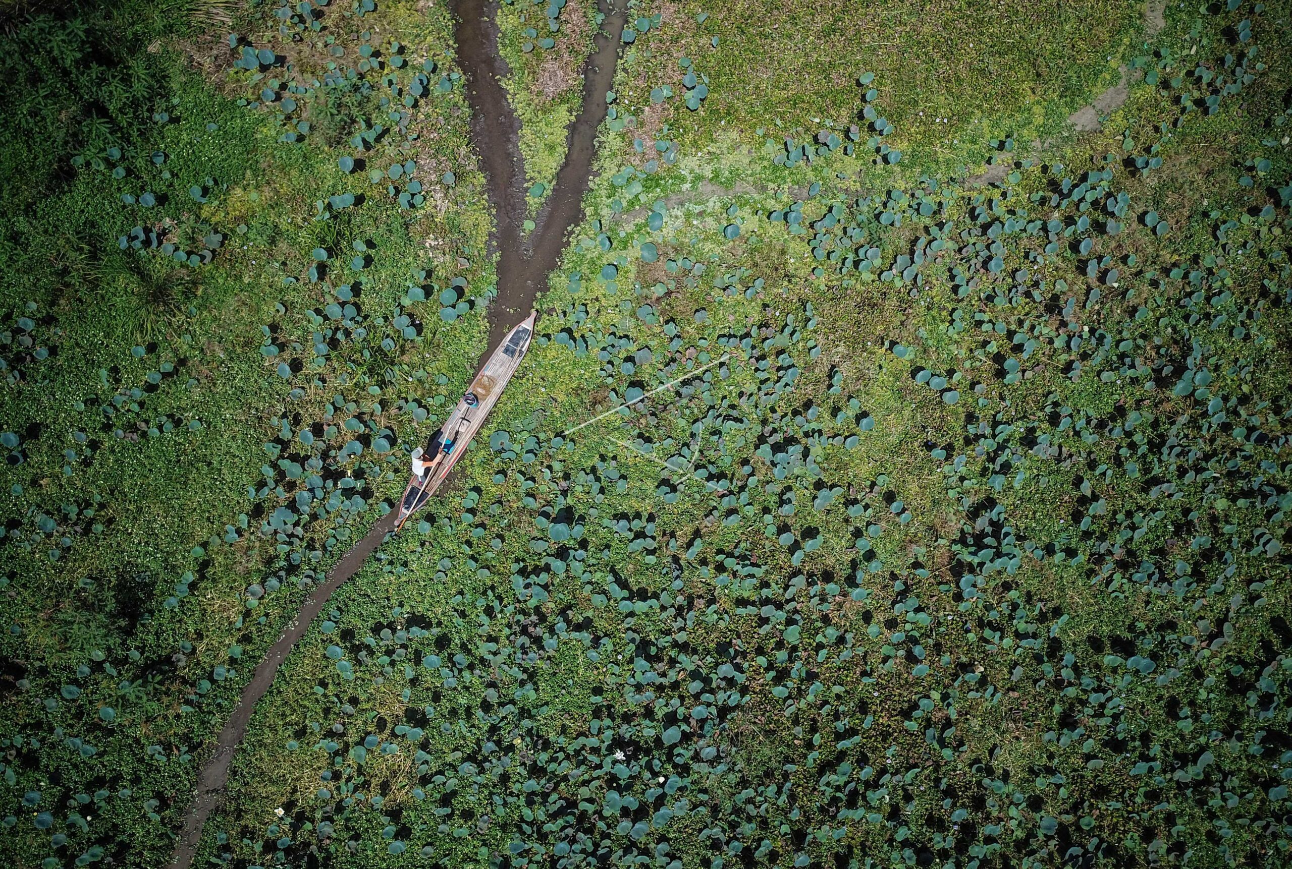 Nelayan menggunakan perahu pulang selepas mencari ikan di Danau Lebo, Taliwang, Sumbawa Barat, NTB, Rabu (3/10/2018). ANTARA FOTO/Ahmad Subaidi/dw/pras.