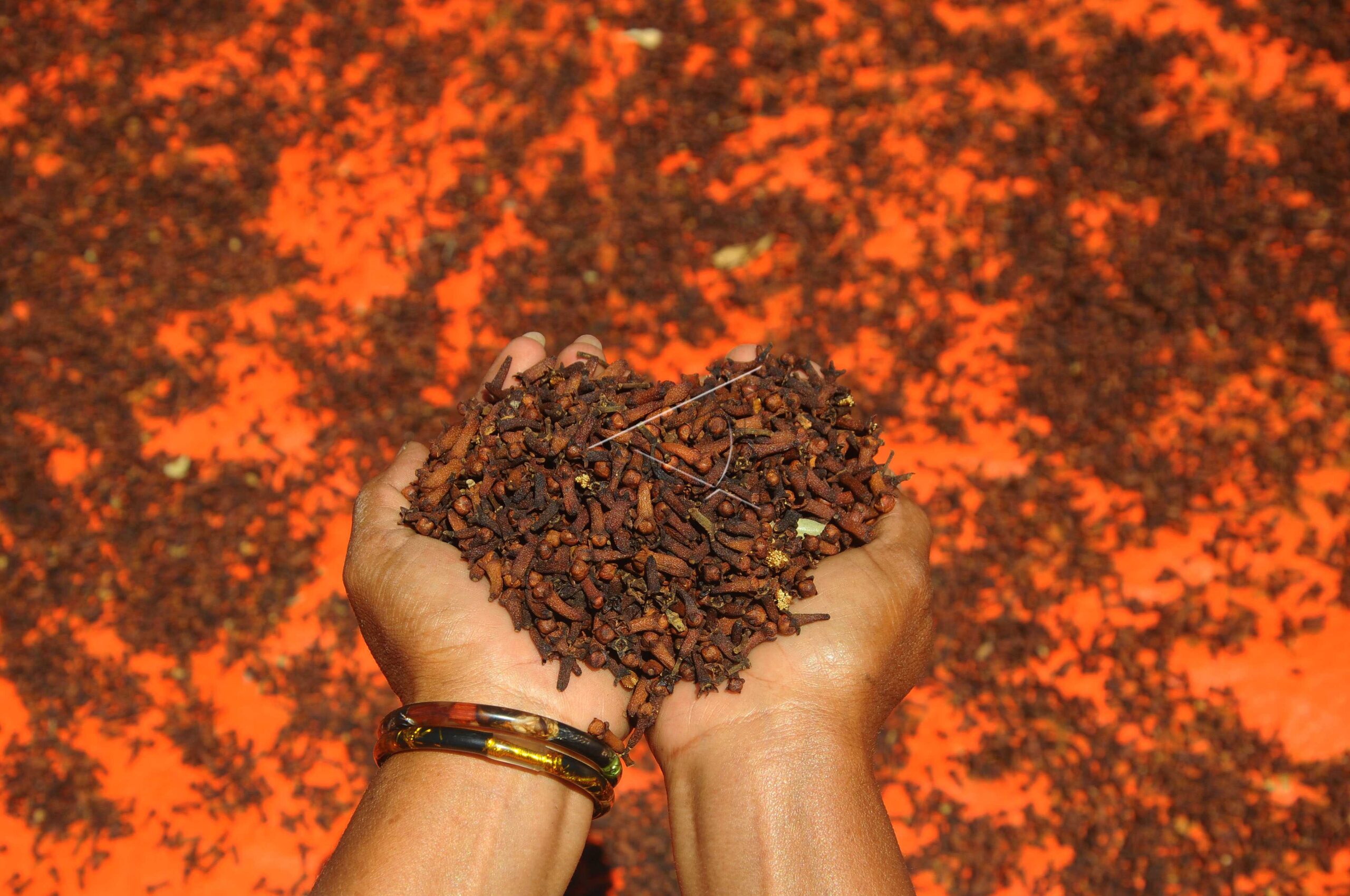 Pekerja menunjukan hasil panen cengkeh di Musuk, Boyolali, Jawa Tengah, Jumat (27/7/2018). ANTARA FOTO/Aloysius Jarot Nugroho.