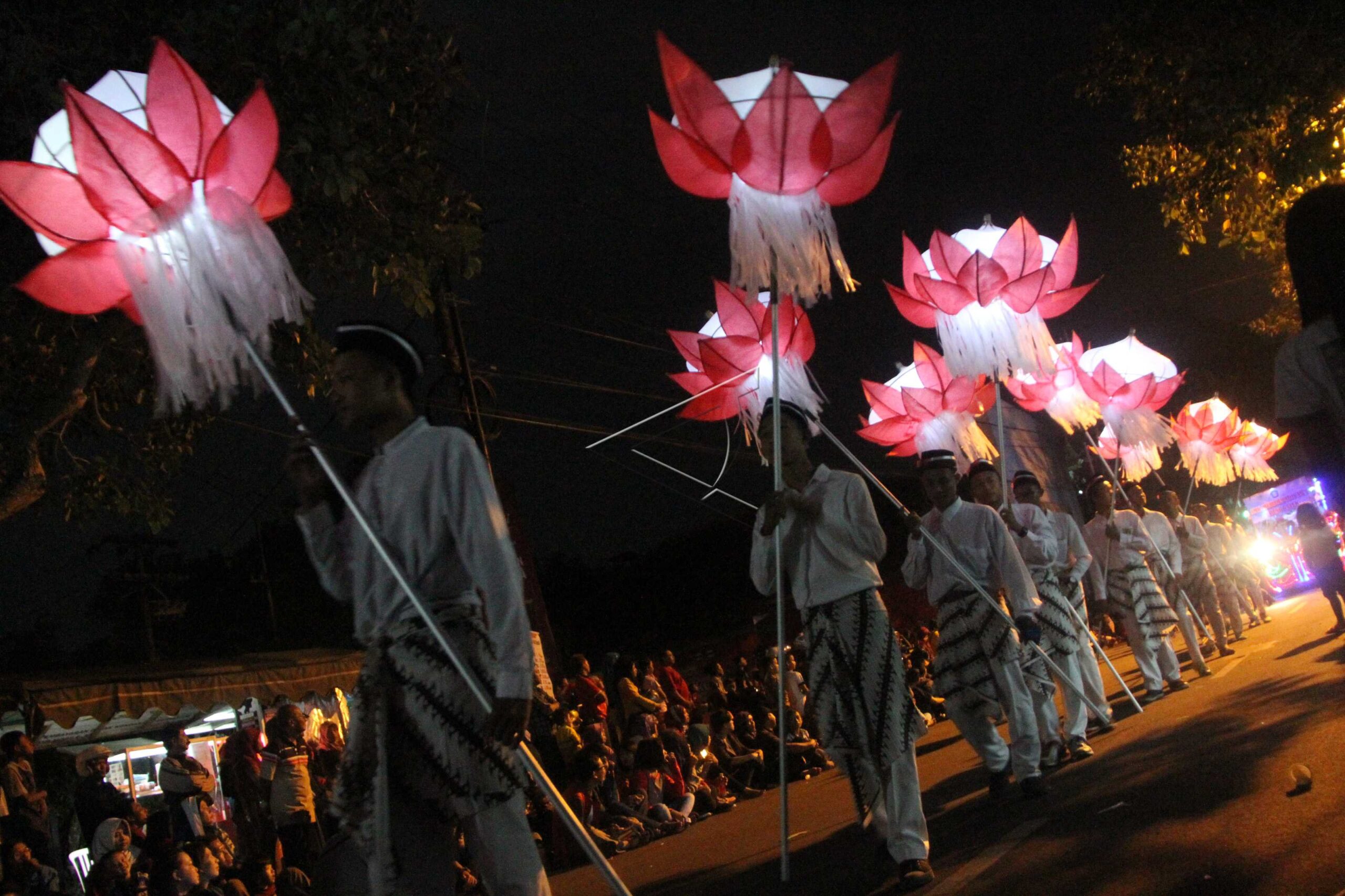 Peserta dengan berbagai aksesoris lampu hias berjalan mengikuti pawai lampion dalam rangka memperingati Hari Kebangkitan Nasional di jalan raya Kota Trenggalek, Jawa Timur, Sabtu (21/5/2016). ANTARA FOTO/Destyan Sujarwoko/foc/dw/nym.