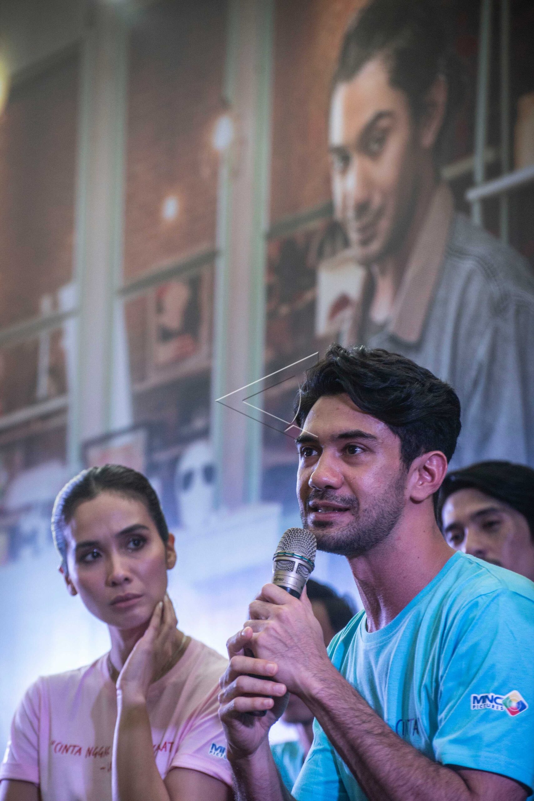 Pemeran film Toko Barang Mantan Reza Rahardian (kanan) bersama Marsha Timothy (kiri) berfoto bersama seusai peluncuran di Jakarta, Selasa (11/2/2020). Film Toko Barang Mantan yang akan tayang serentak di bioskop pada 20 Februrari 2020 tersebut bercerita tentang sebuah toko jual beli barang mantan pacar bagi orang yang ingin “move on” dari mantannya. ANTARA FOTO/Aprillio Akbar/foc.
