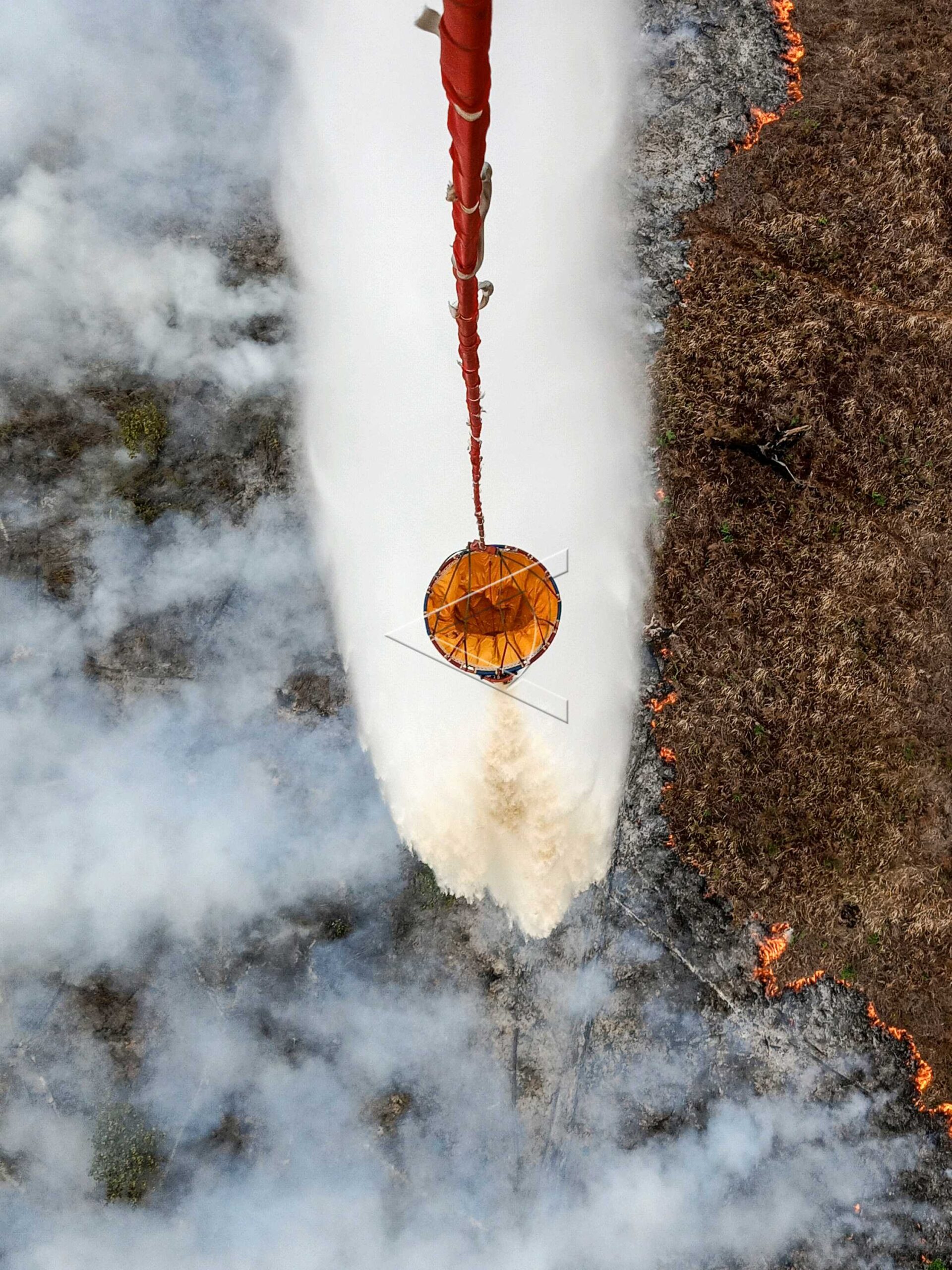 Petugas Badan Nasional Penanggulangan Bencana (BNPB) memadamkan kebakaran lahan dan hutan dengan Helikopter MI-18 (water boombing) di Muara Medak, Bayung Lincir, Musi Banyuasin, Sumatera Selatan, Rabu (14/8/2019). ANTARA FOTO/Nathan/lmo/dw/nym.
