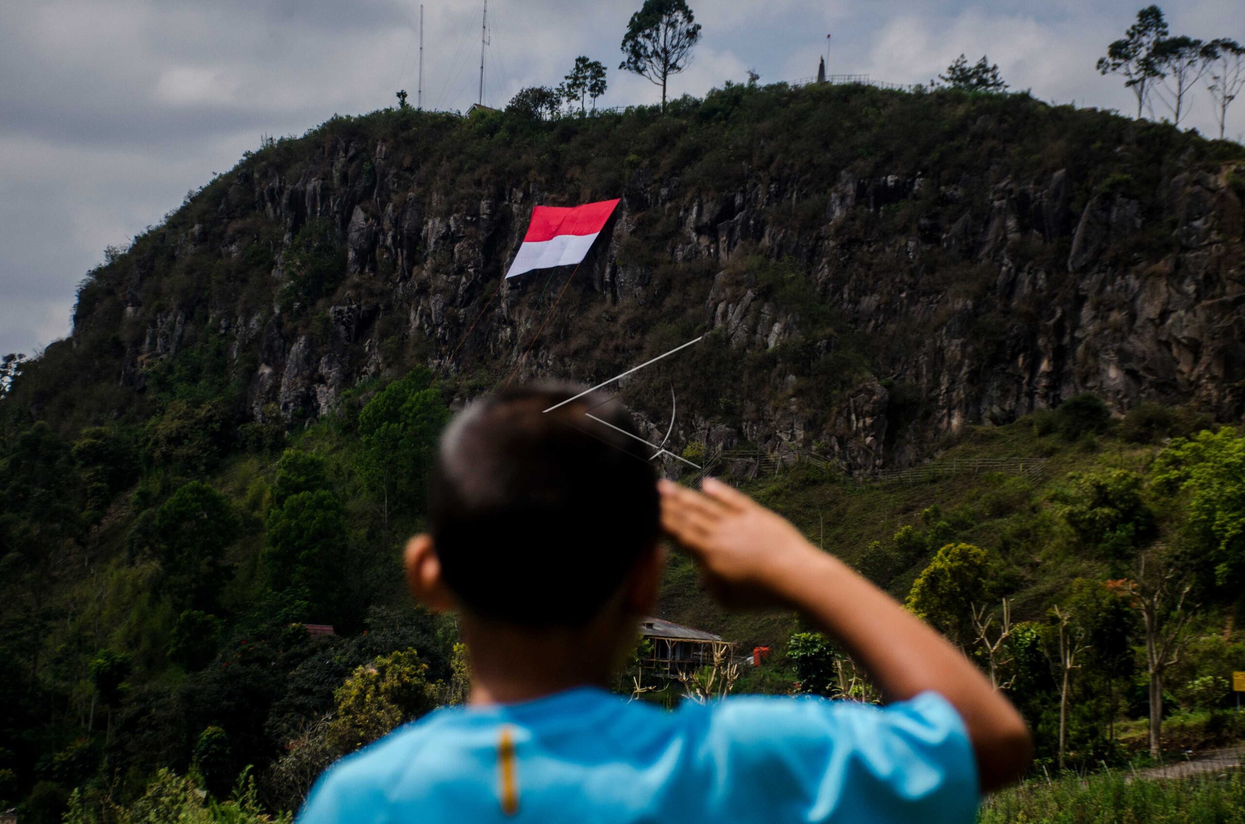 Seorang anak memberi hormat ke arah bendera merah putih yang dikibarkan di Tebing Gunung Batu, Lembang, Kabupaten Bandung Barat, Senin (17/8/2020). Komunitas Pecinta alam bersama Karang Taruna Lembang mengibarkan bendera merah putih berukuran 8 x 12 meter di tebing kawasan Sesar Lembang dengan ketinggian 1228 meter dari pemukaan laut sebgai peringatan HUT Ke-75 Kemerdekaan Republik […]
