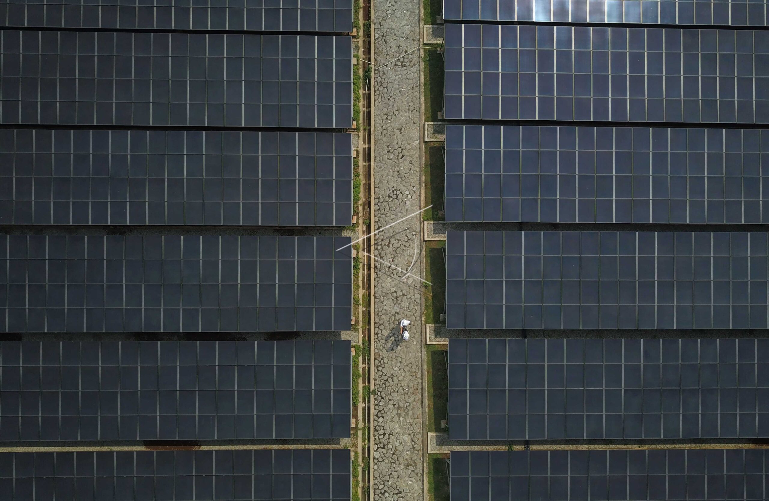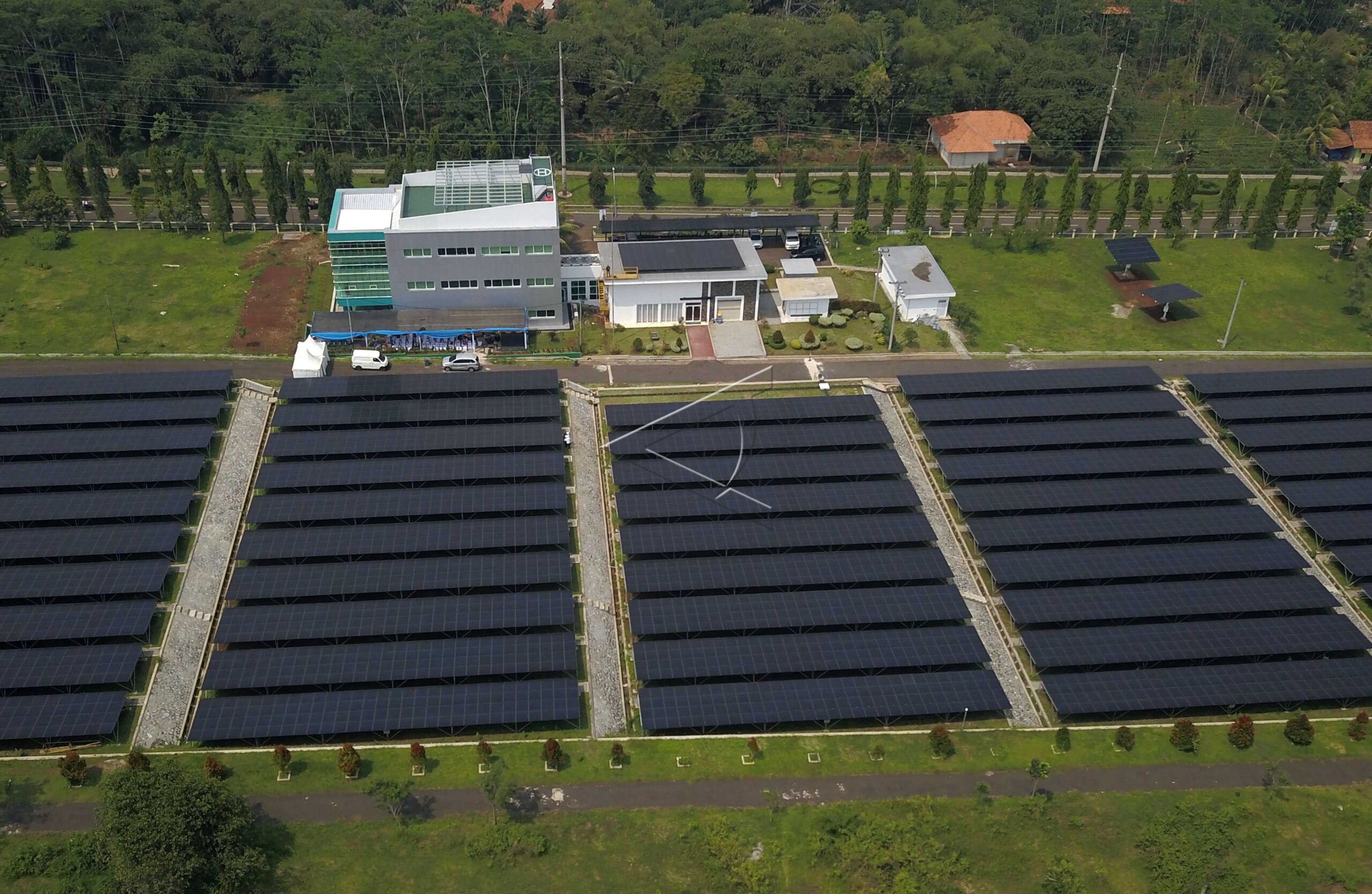 Foto udara panel surya Pembangkit Listrik Tenaga Surya (PLTS) Cirata di Kabupaten Purwakarta, Jawa Barat, Rabu (21/11/2018). ANTARA FOTO/Raisan Al Farisi/dw/pras.