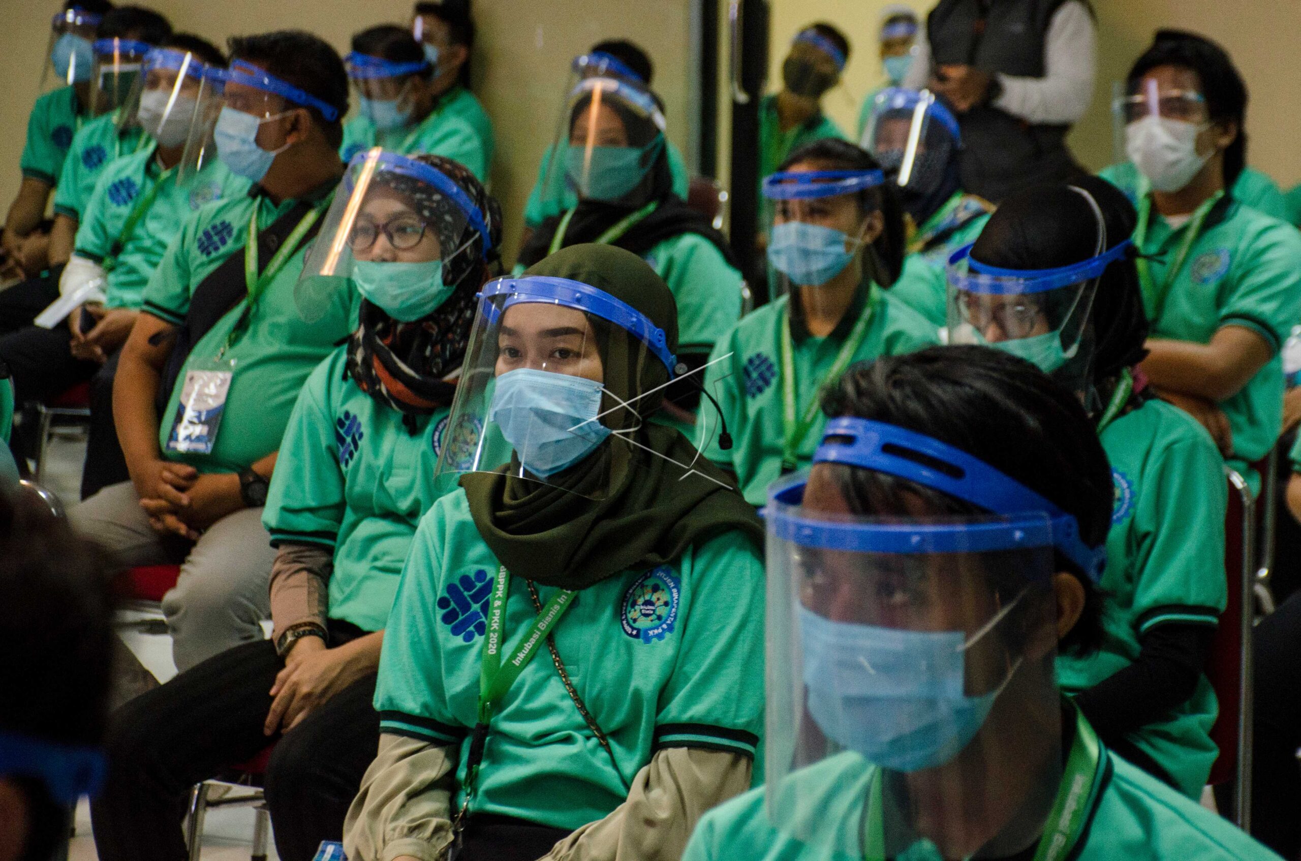 Menteri Ketenagakerjaan Ida Fauziyah (kanan) berdialog dengan salah seorang peserta pada Pembukaan Pelatihan Inkubasi Bisnis di BBPPK dan PKK Lembang, Kabupaten Bandung Barat, Jawa Barat, Minggu (19/7/2020). Pelatihan ersebut diikuti oleh peserta dari tujuh provinsi di Indonesia yang bertujuan memperluas kesempatan dan lapangan kerja serta menekan angka pengangguran di tengah pandemi COVID-19. ANTARA FOTO/Novrian Arbi/aww.