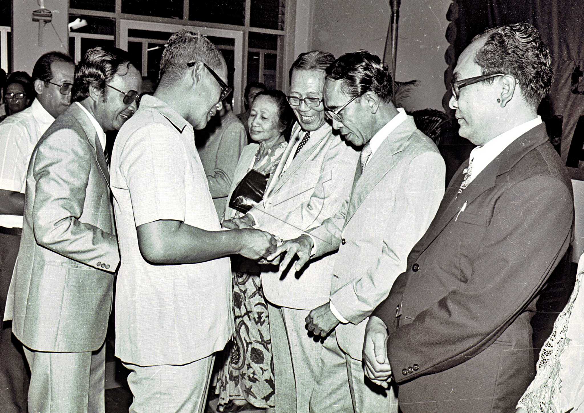 Sekjen Departemen Kesehatan Soejoto menyerahkan piagam penghargaan kepada 18 orang perintis PT Kimia Farma, di Jakarta, Selasa (12/9/1978). ANTARA FOTO/Mawardi Muis/SR/asf/tom.