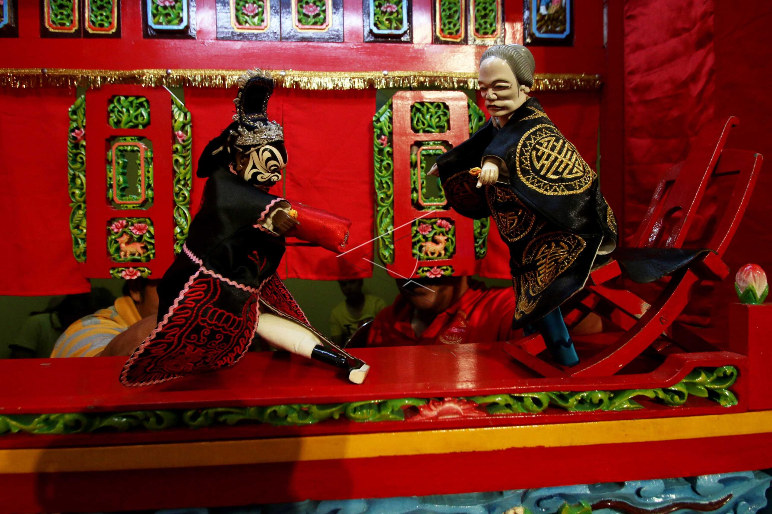 Dalang memainkan Wayang Potehi dalam perayaan Imlek 2017 di Jakarta, Kamis (19/1/2017). ANTARA FOTO/Rivan Awal Lingga/pd/dw/nym.
