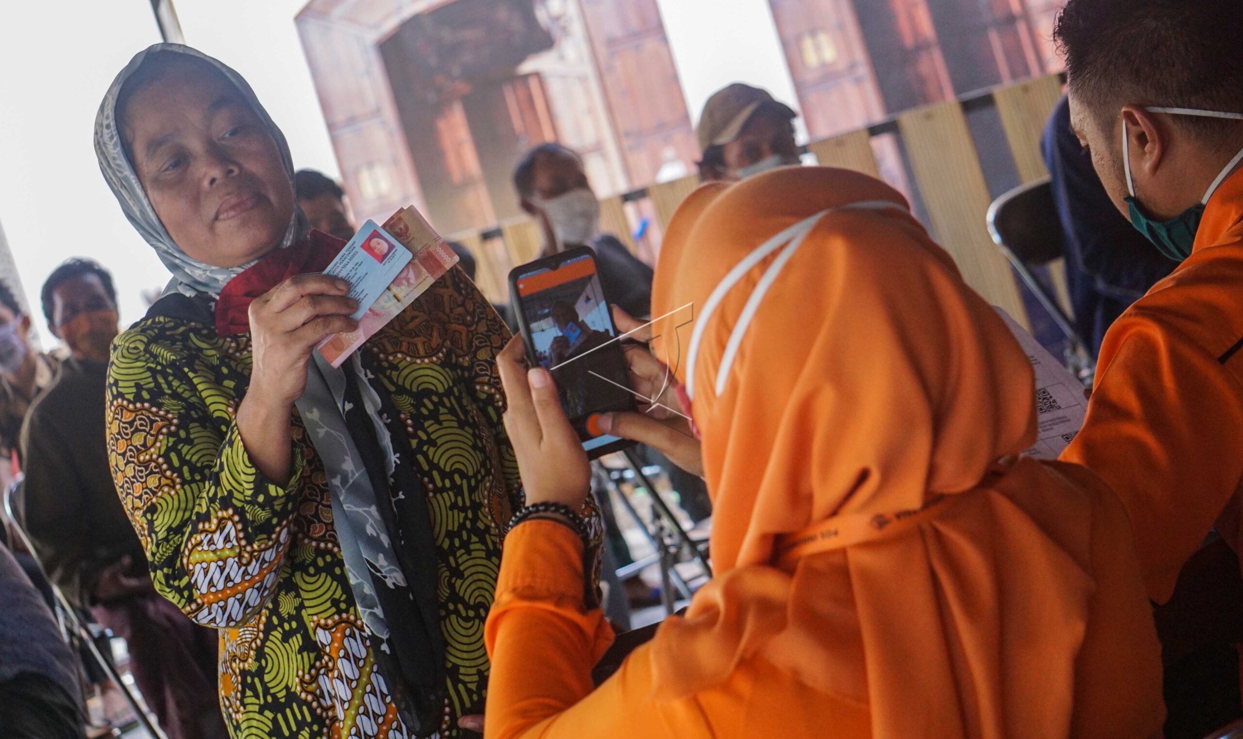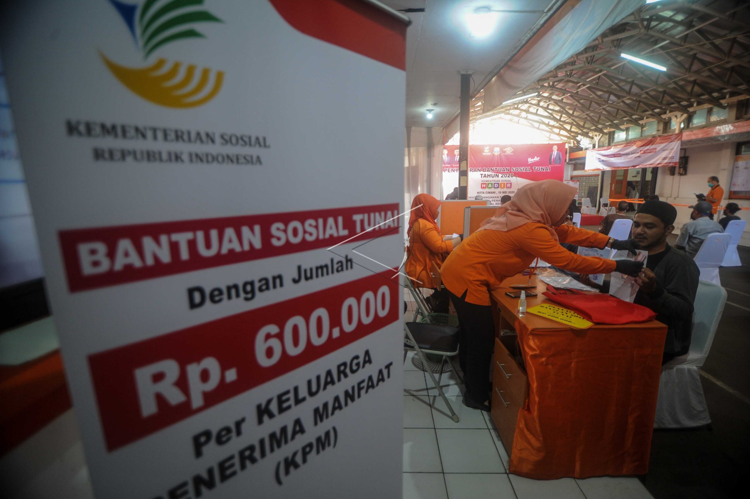 Petugas memotret Keluarga Penerima Manfaat (KPM) yang telah menerima Bantuan Sosial Tunai (BST) di Kantor Pos Cimahi, Jawa Barat, Minggu (10/5/2020). Pemerintah melalui Kementerian Sosial menyalurkan dana bantuan sosial tunai senilai Rp600.000 kepada 13.491 Keluarga Penerima Manfaat di Kota Cimahi yang terdampak wabah COVID-19. ANTARA FOTO/Raisan Al Farisi/foc.