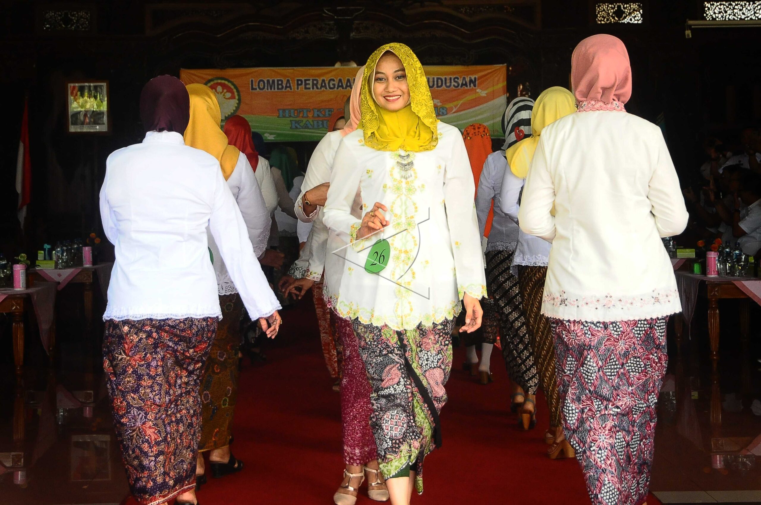 Peserta mengenakan busana kudusan saat peragaan busana di Kudus, Jawa Tengah, Jumat (30/11/2018). ANTARA FOTO/Yusuf Nugroho/wsj/dw/wpa.