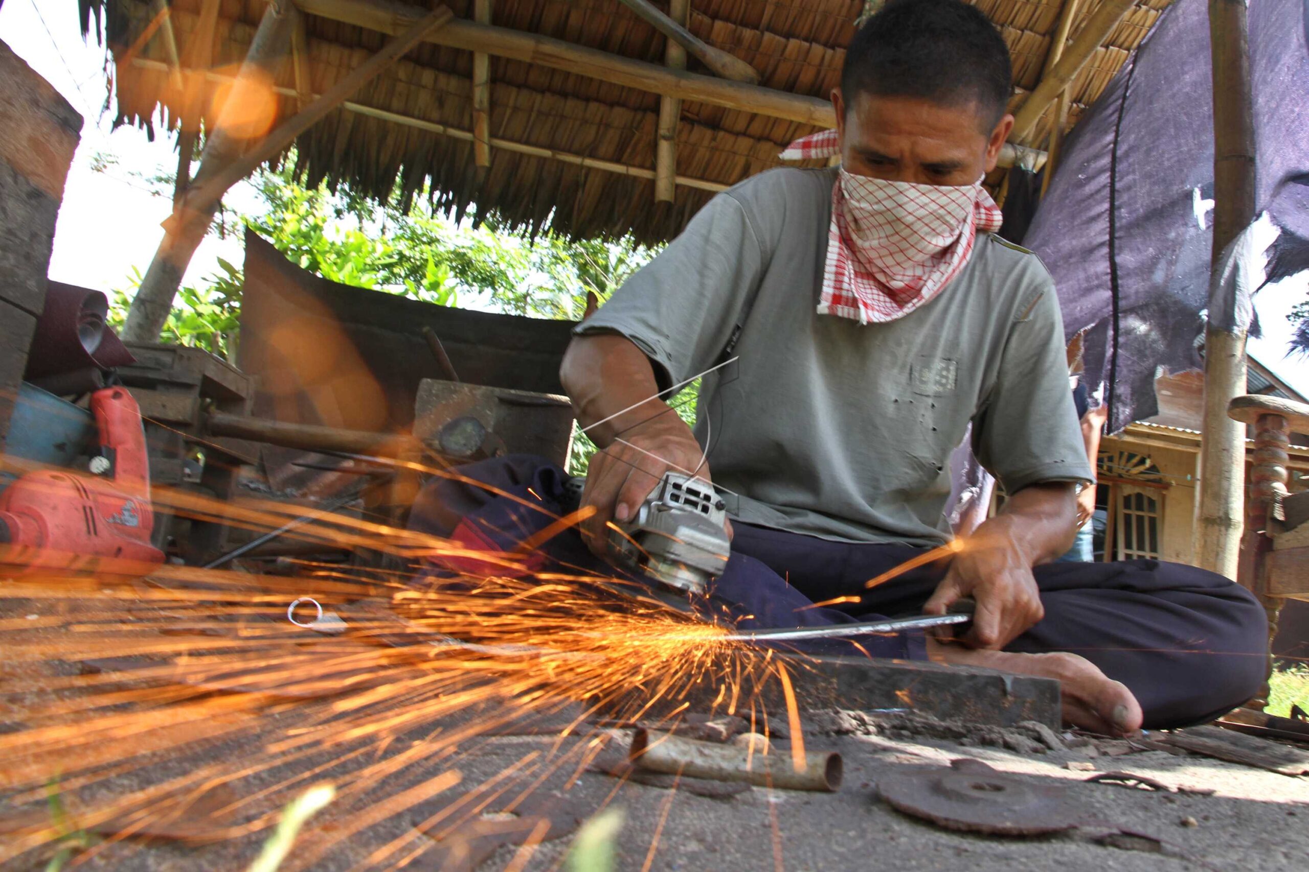Perajin membuat parang di Desa Peudawa Puntong, Aceh Timur, Aceh, Sabtu (25/6/2016). ANTARA FOTO/Syifa Yulinnas/dw/tom.