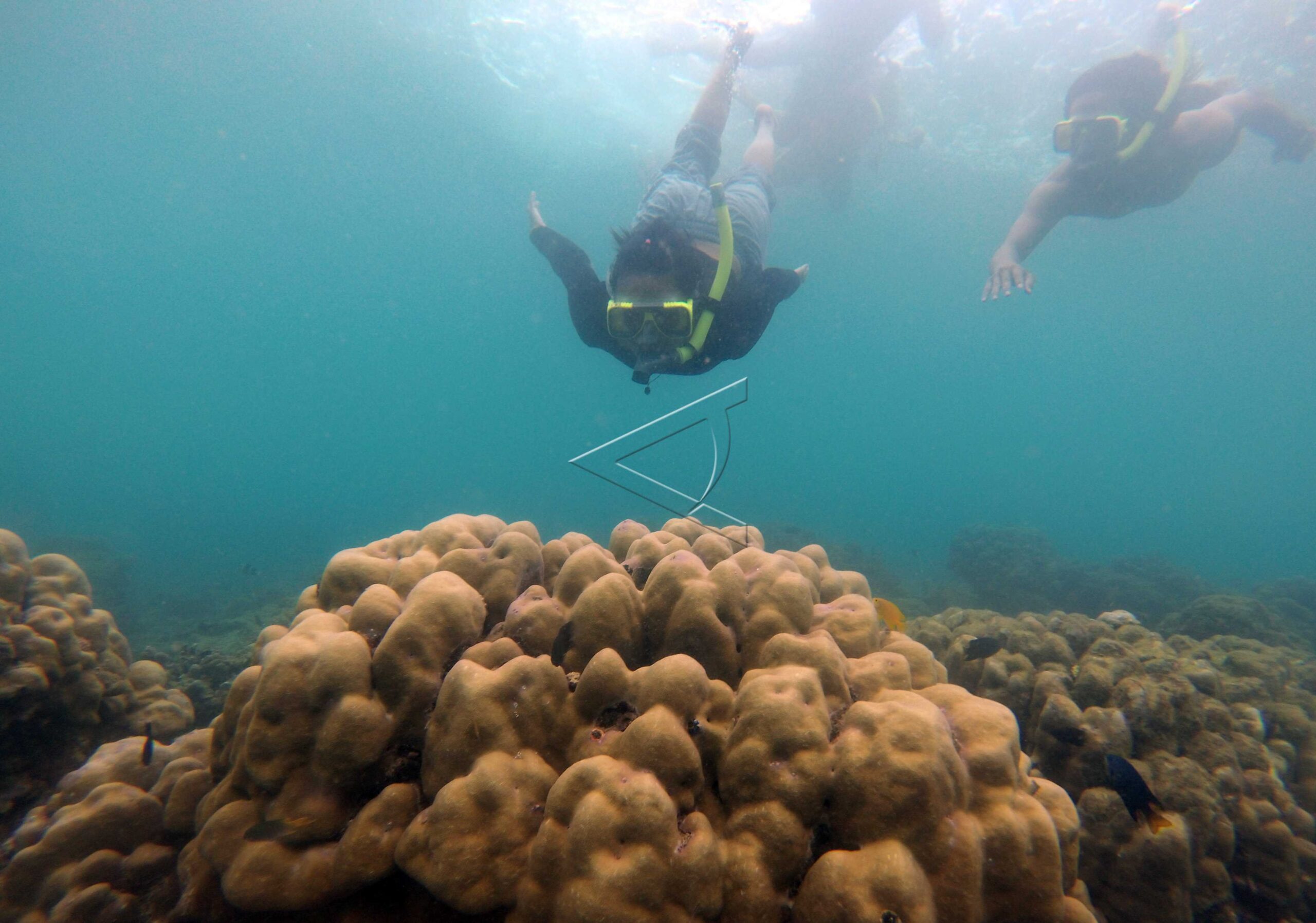 Wisatawan melihat keindahan terumbu karang bawah laut di Blue Bay, Banyuwangi, Jawa Timur, Selasa, (31/1/2017). ANTARA FOTO/Budi Candra Setya/foc/dw/nym.