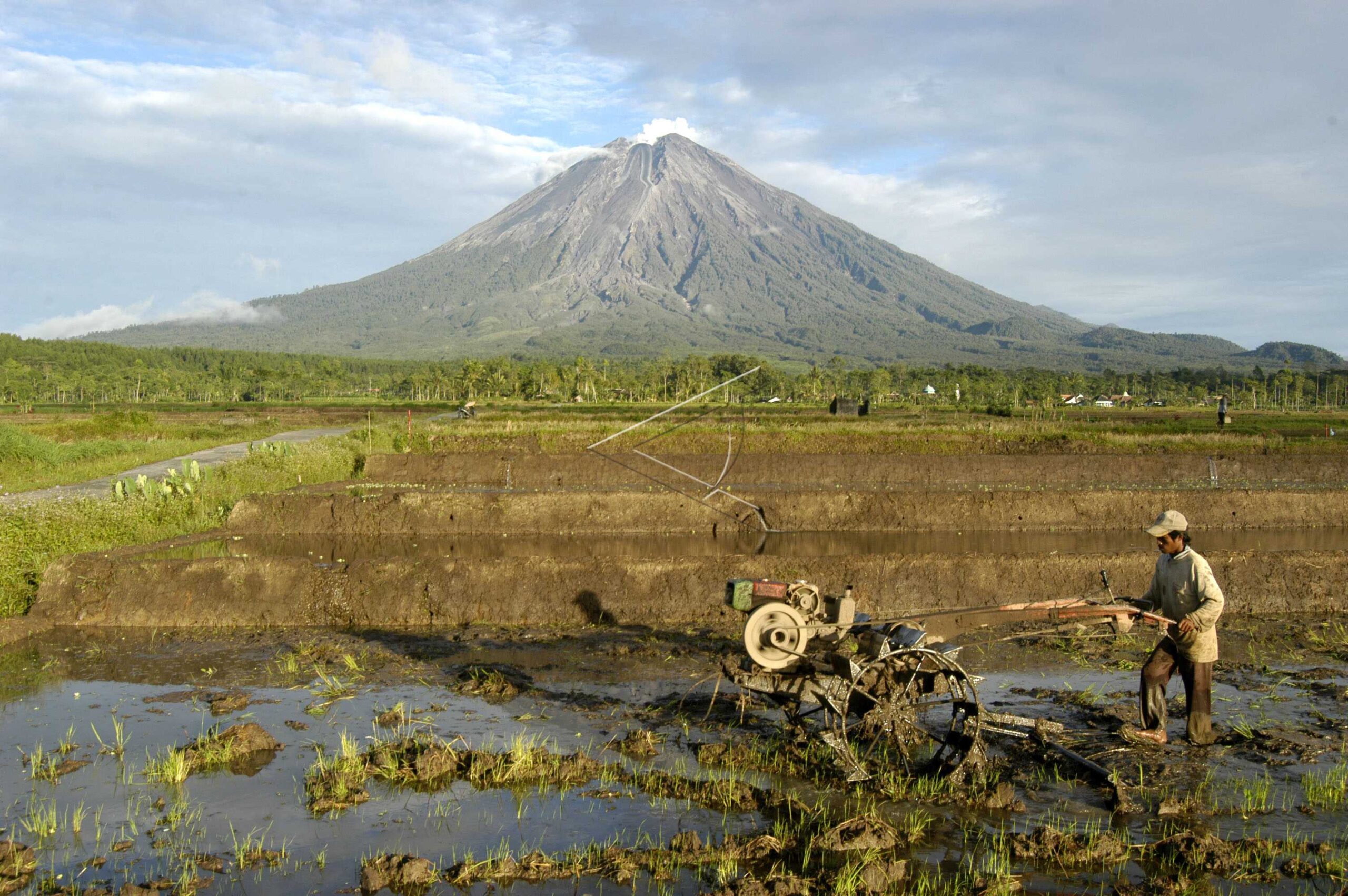 Seorang petani membajak sawah di Desa Supit Urang, Pronojiwo, Lumajang, Jawa Timur, Kamis (9/2/2012). ANTARA FOTO/Seno S.