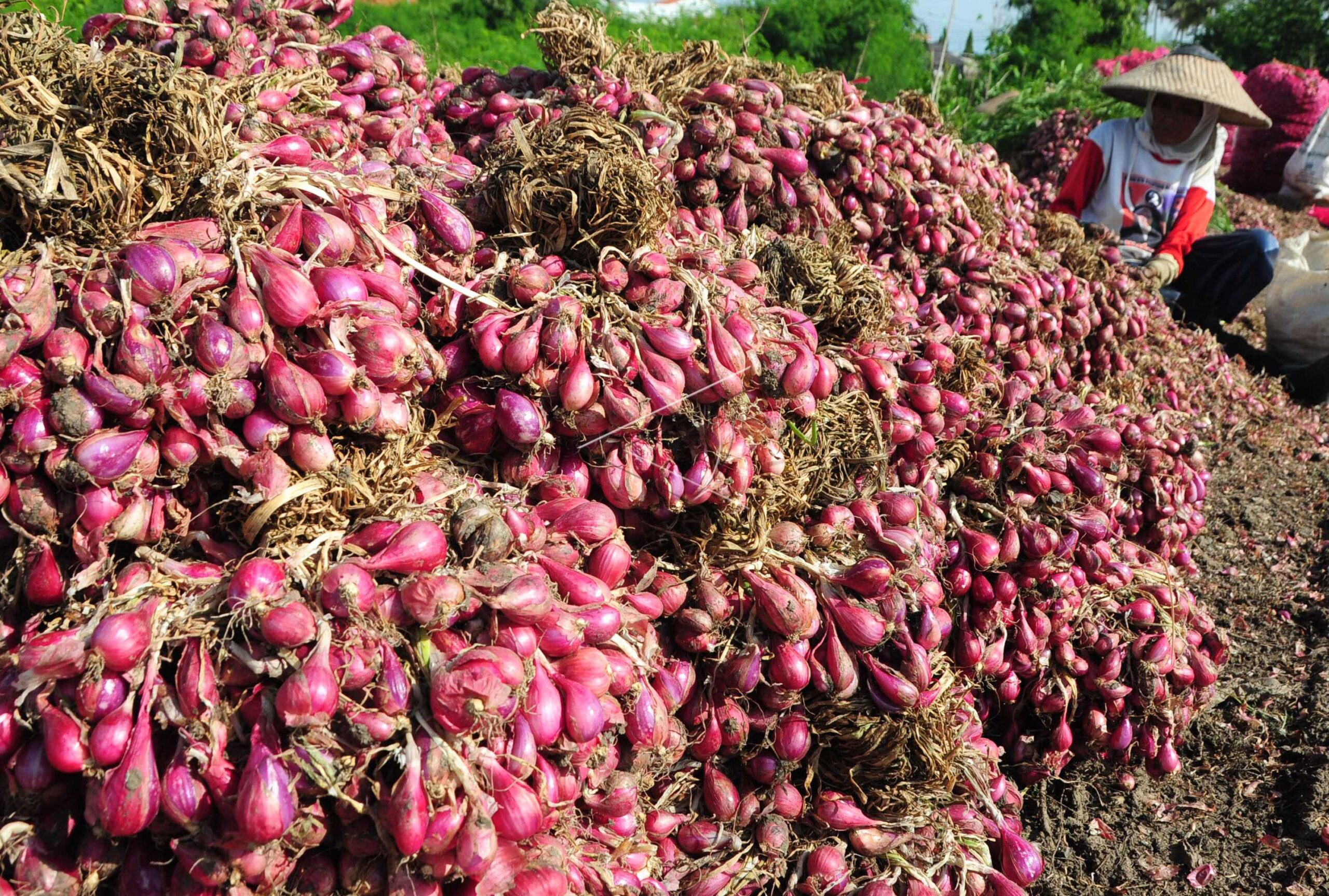 Seorang buruh menyortir bawang merah di Desa Pesantunan, Brebes, Jateng, Selasa (11/12/2012). ANTARA FOTO/Oky Lukmansyah.