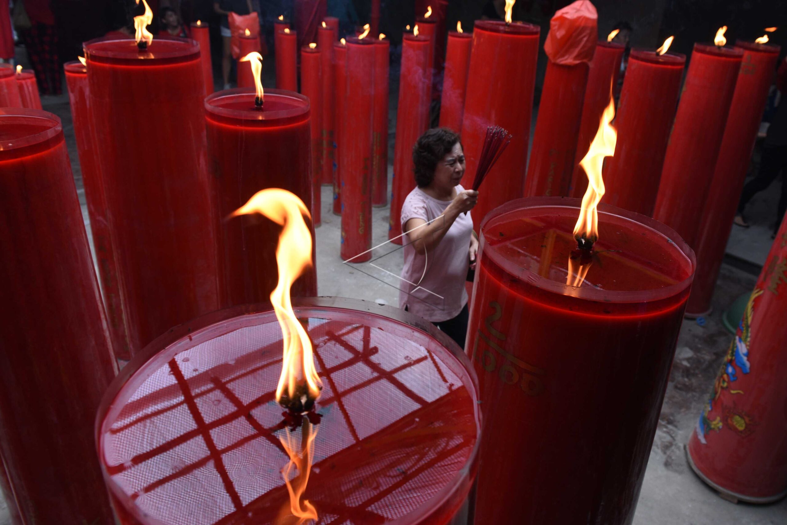 Warga keturunan Tionghoa membawa hio untuk bersembahyang tahun baru Imlek 2567 di Vihara Dharma Bhakti Petak Sembilan, Jakarta, Senin (8/2/2016). ANTARA FOTO/Hafidz Mubarak A./dw/nym.