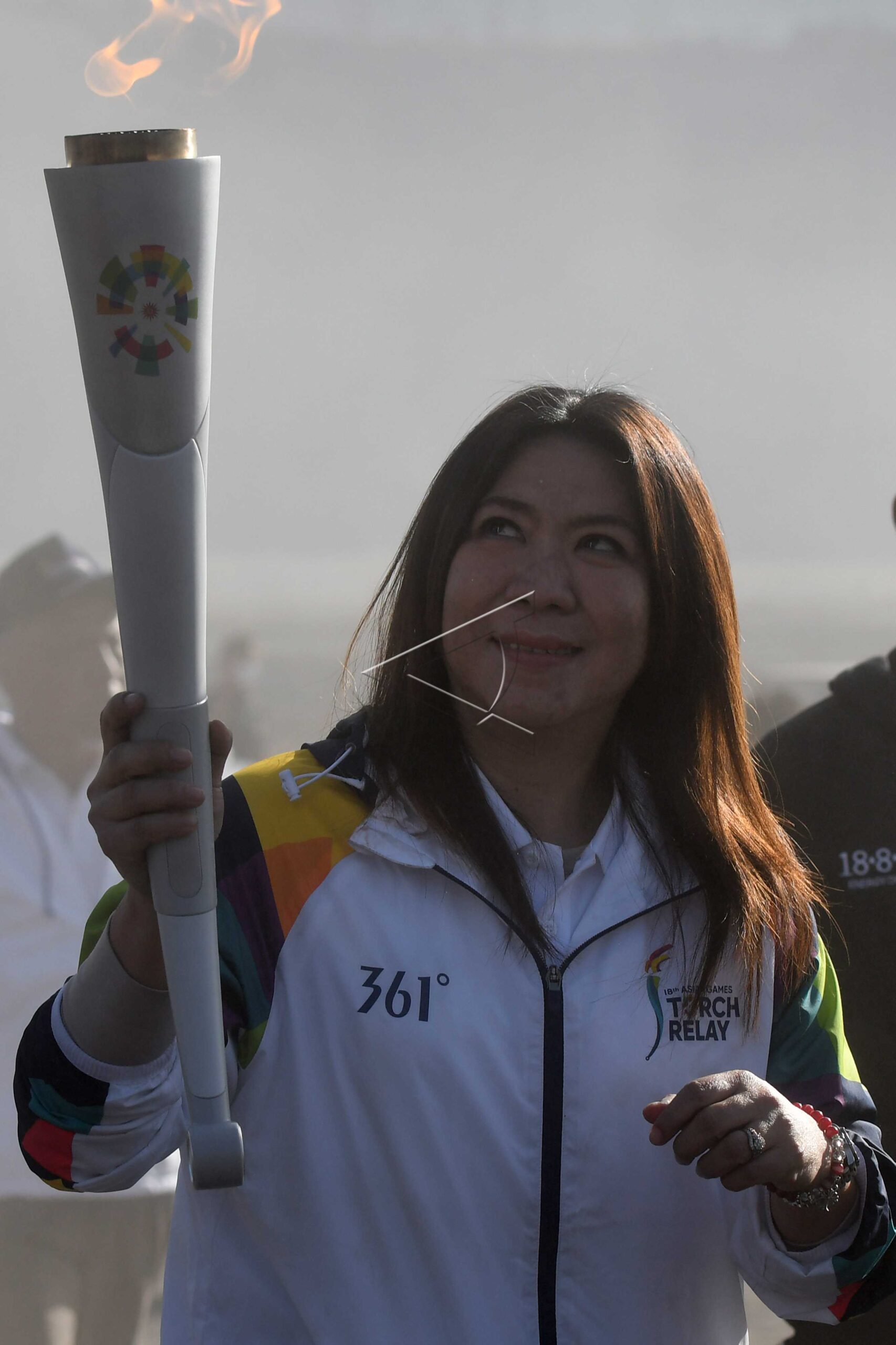 Legenda bulu tangkis Indonesia Susi Susanti berlari sambil membawa obor saat prosesi Torch Relay Asian Games 2018 di lautan pasir Gunung Bromo, Probolinggo, Jawa Timur, Sabtu (21/7/2018). ANTARA FOTO/Zabur Karuru/pd/dw/nym.