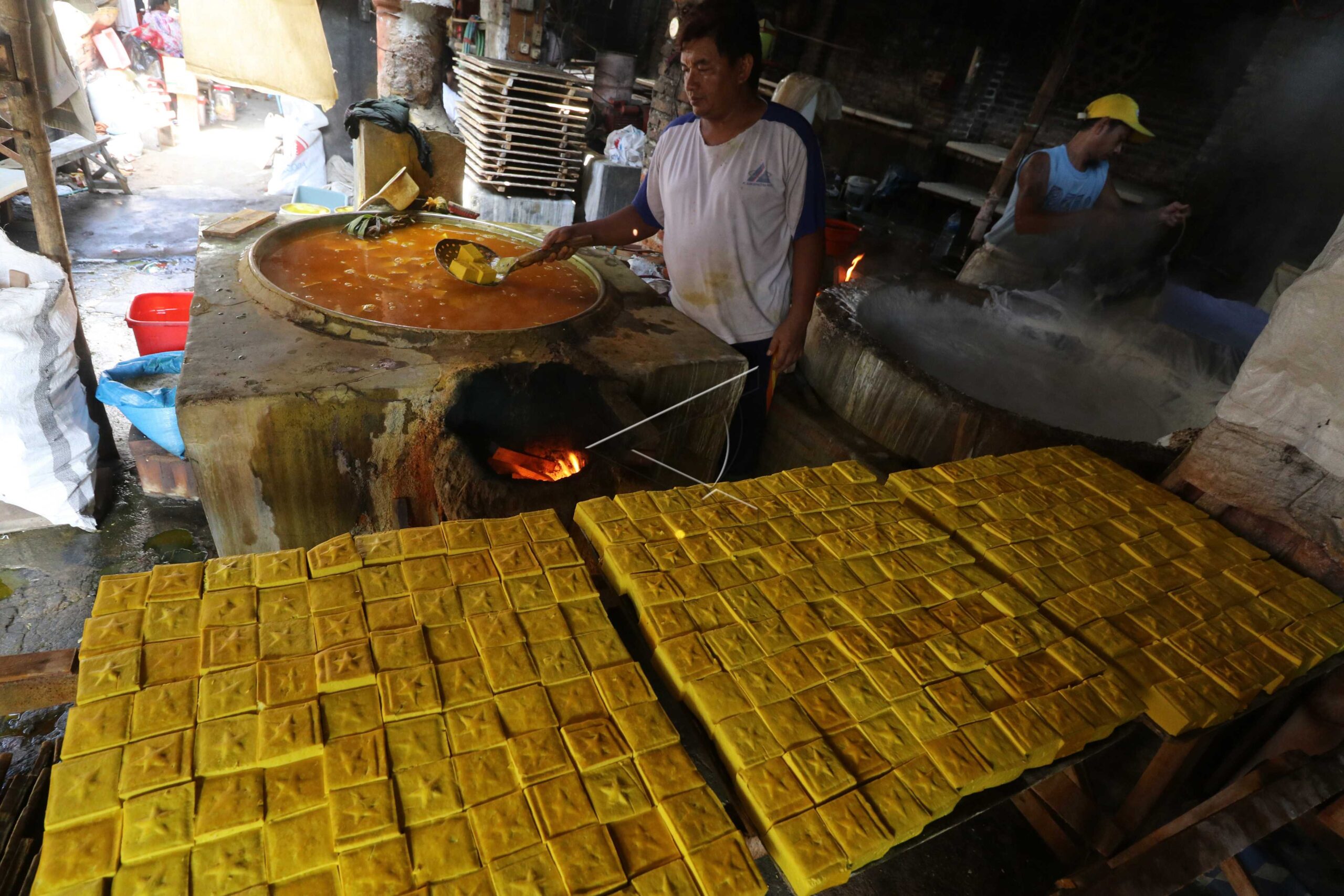 Perajin menyelesaikan pembuatan tahu Takwa di Kelurahan Tinalan, Kota Kediri, Jawa Timur, Sabtu (1/6/2019). ANTARA FOTO/Prasetia Fauzani/foc/dw.
