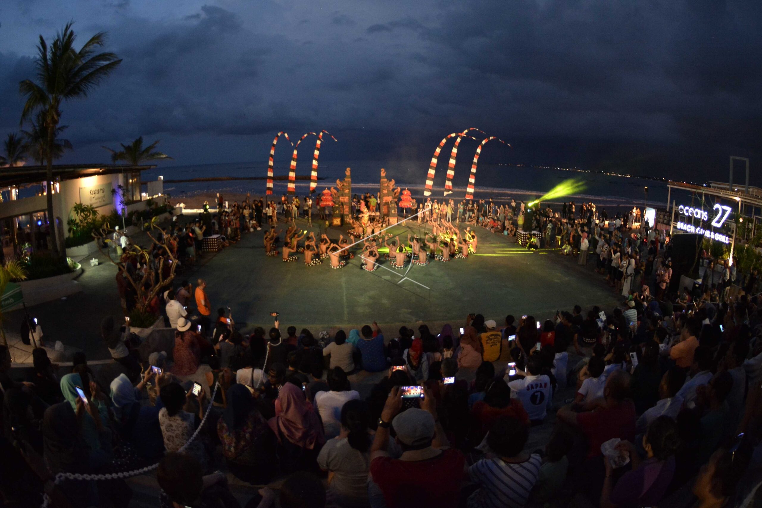 Penari menampilkan kesenian Tari Kecak di sebuah pusat perbelanjaan di kawasan Kuta, Bali, Sabtu (31/3/2018). ANTARA FOTO/Fikri Yusuf/Spt/dw/wpa.