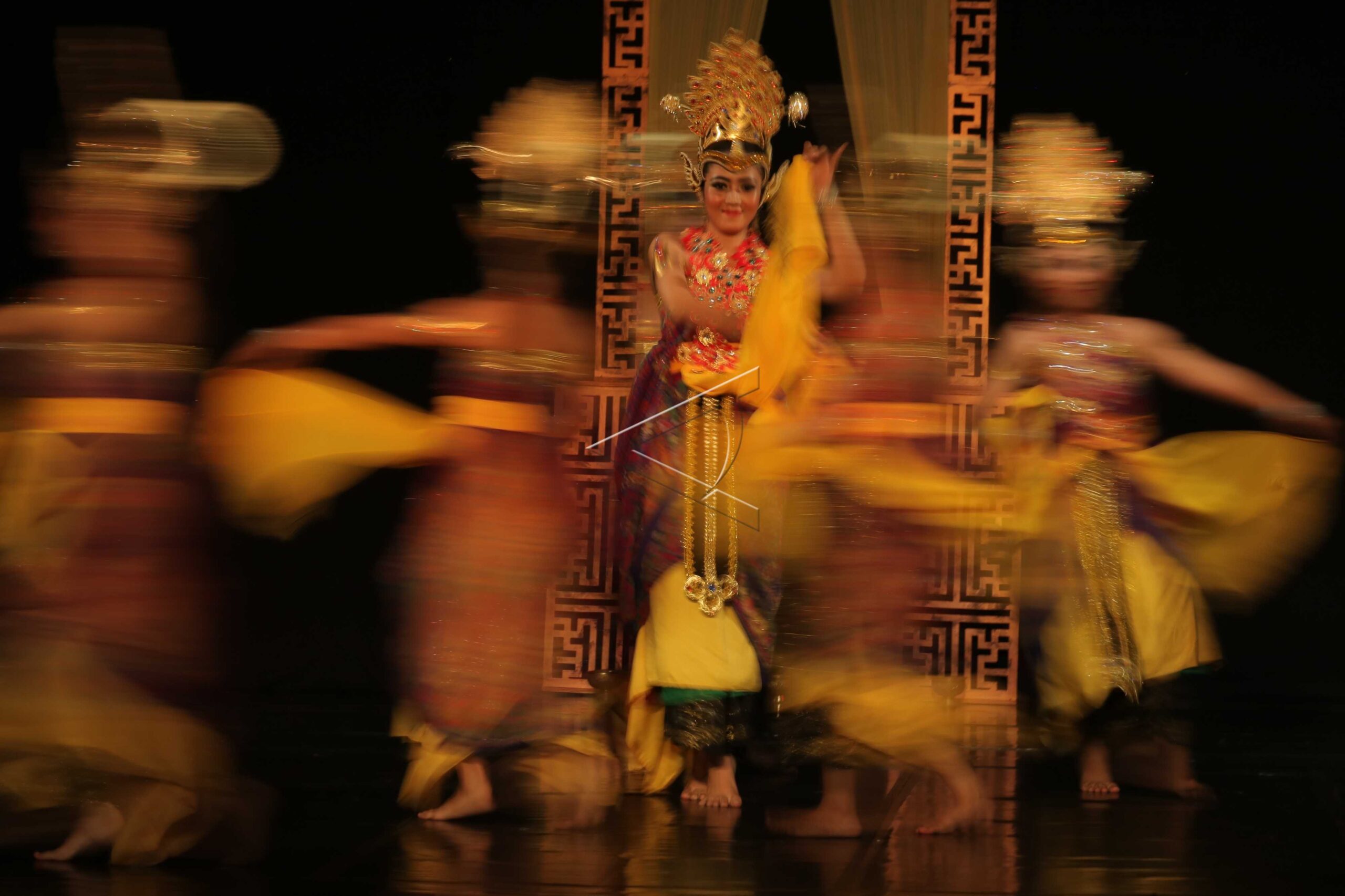 Penari menampilkan tarian Bedaya Sarkara Warih saat Gelar Seni Budaya Jember di Taman Budaya Jawa Timur, Surabaya, Jawa Timur, Jumat (9/3/2018). ANTARA FOTO/Didik Suhartono/foc/dw/wpa.