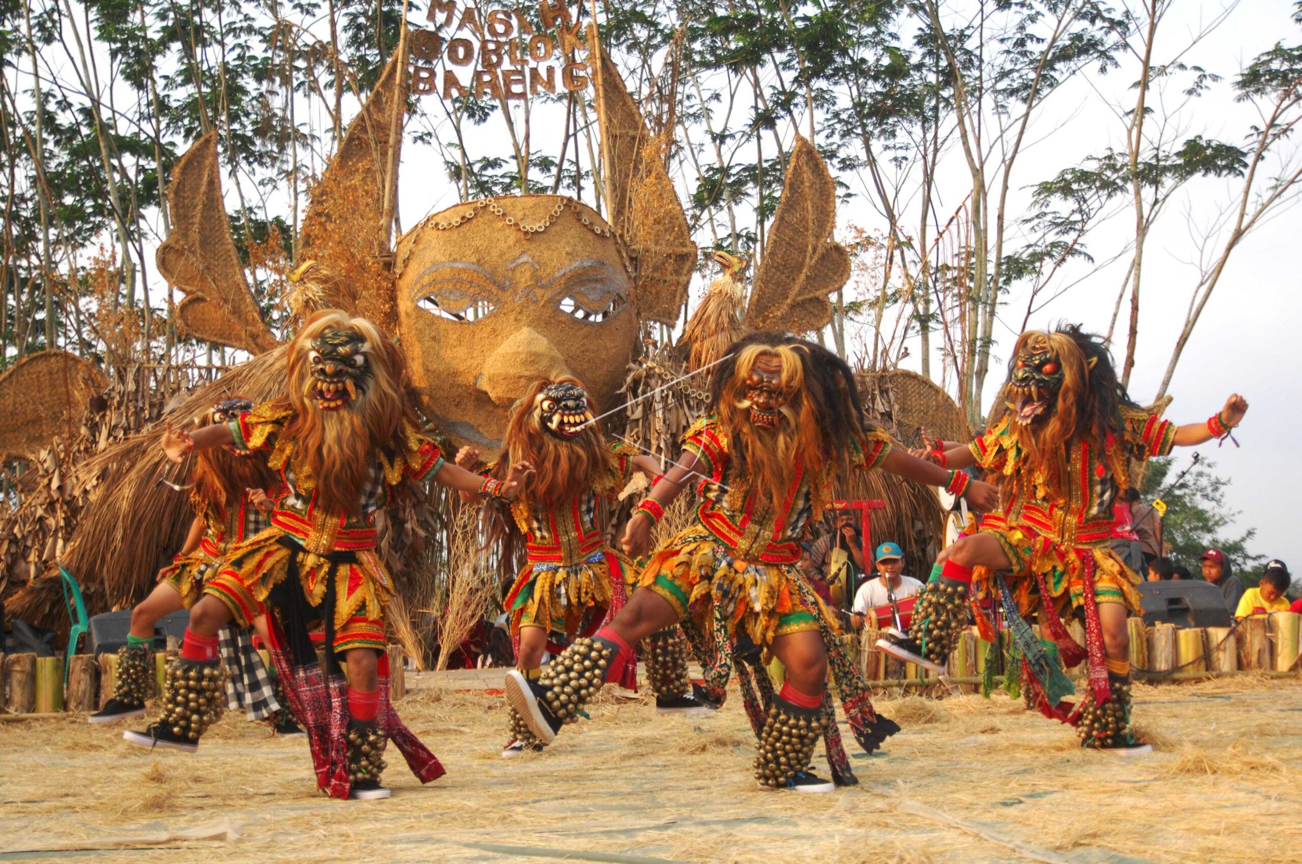 Penari komunitas New Zugus Yogyakarta menampilkan tari Butho di arena Festival Lima Gunung (FLG) XVII di Wonolelo, Bandongan, Magelang, Jawa Tengah, Minggu (12/8/2018). ANTARA FOTO/Anis Efizudin/ama/dw/wpa.