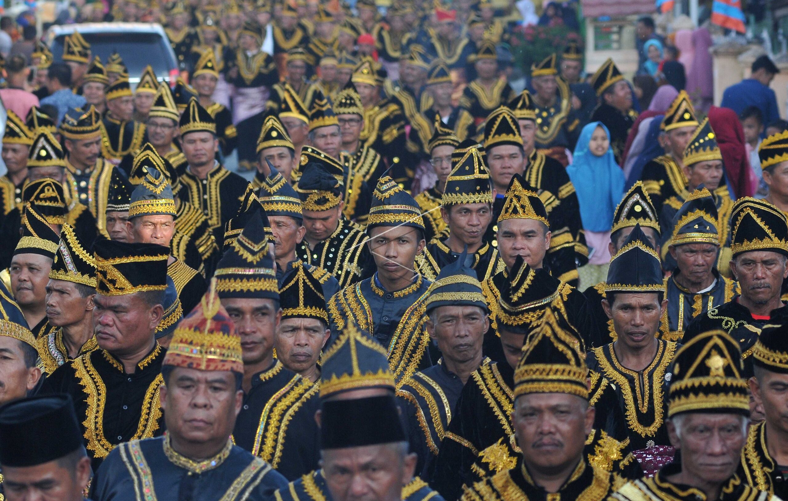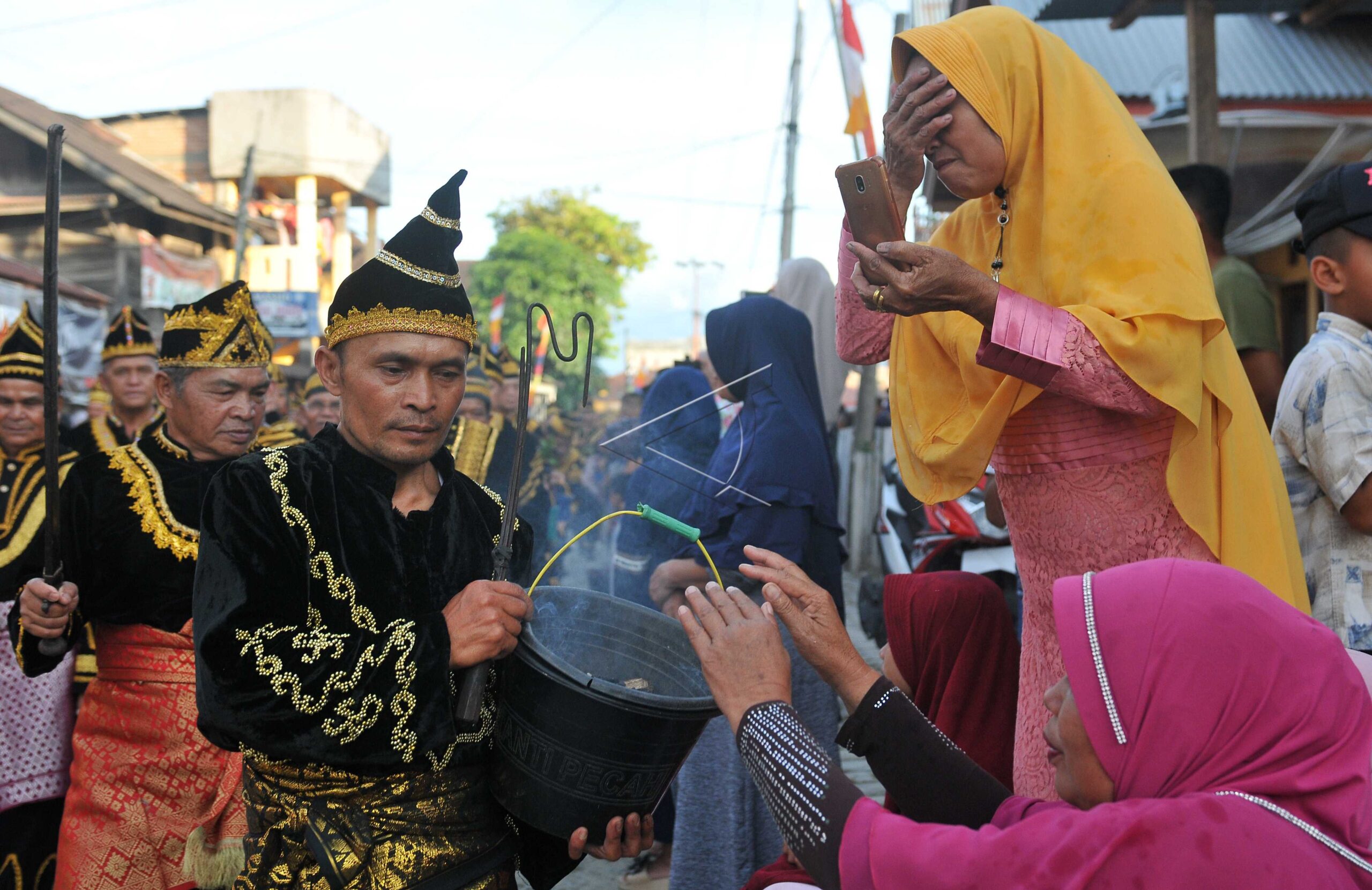 Pemimpin adat menebar asap yang disambut warga saat pelaksanaan tradisi Mengasap Negeri menjelang puncak ritual Kenduri Sko yang merupakan tradisi tua untuk memilih depati atau pemimpin adat baru di Desa Balai, Tigo Luhah Semurup, Air Hangat, Kerinci, Jambi, Selasa (30/4/2019). ANTARA FOTO/Wahdi Septiawan/wsj/dw/nym.