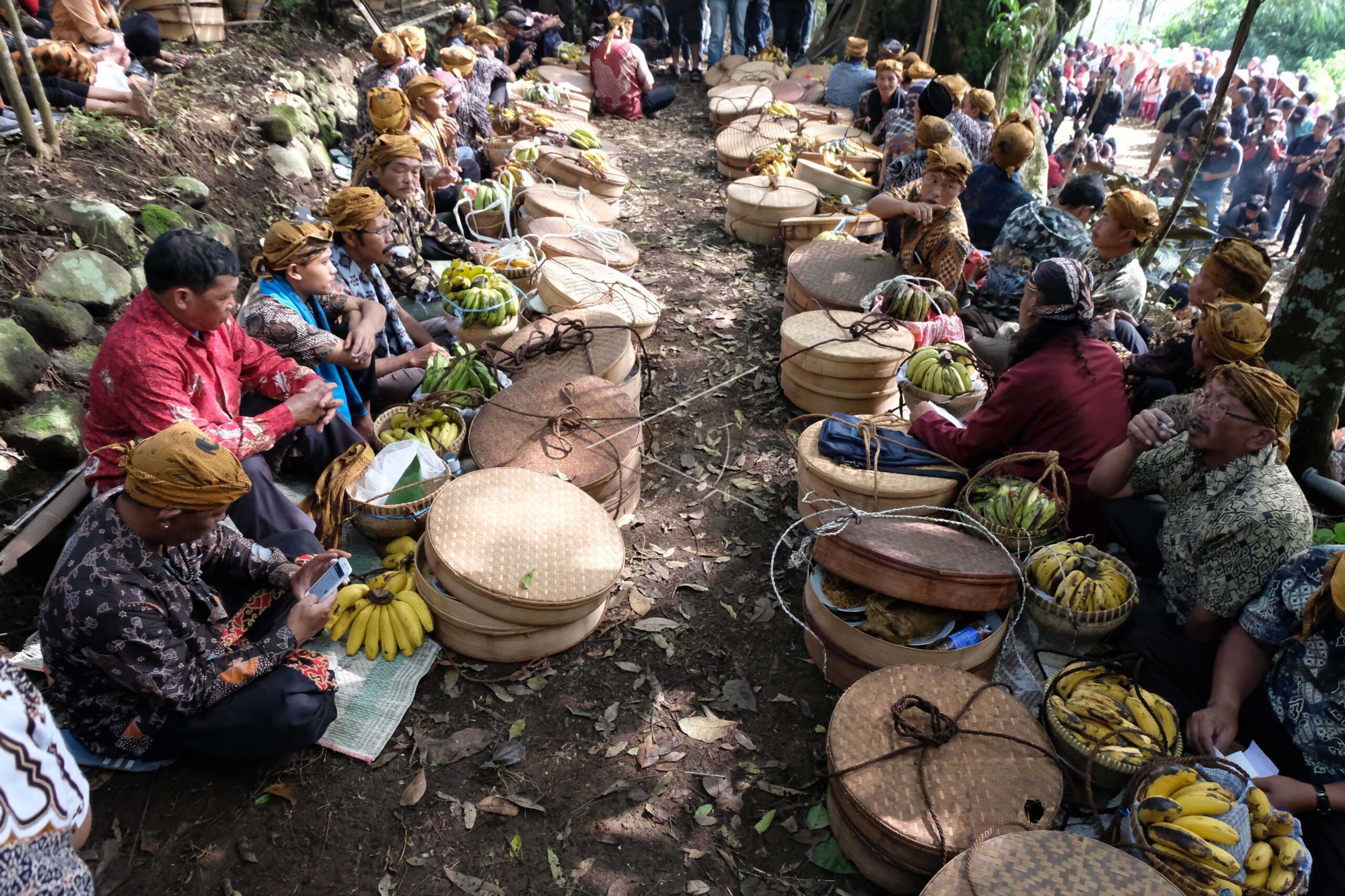 Sejumlah petani tembakau mengikuti tradisi Nyadran Rejeban Plabengan sebagai wujud syukur atas anugerah Tuhan di kawasan lereng gunung Sumbing Dusun Cepit, Pagergunung, Bulu, Temanggung, Jawa Tengah, Jumat (22/3/2019). ANTARA FOTO/Anis Efizudin/aww/dw/nym.