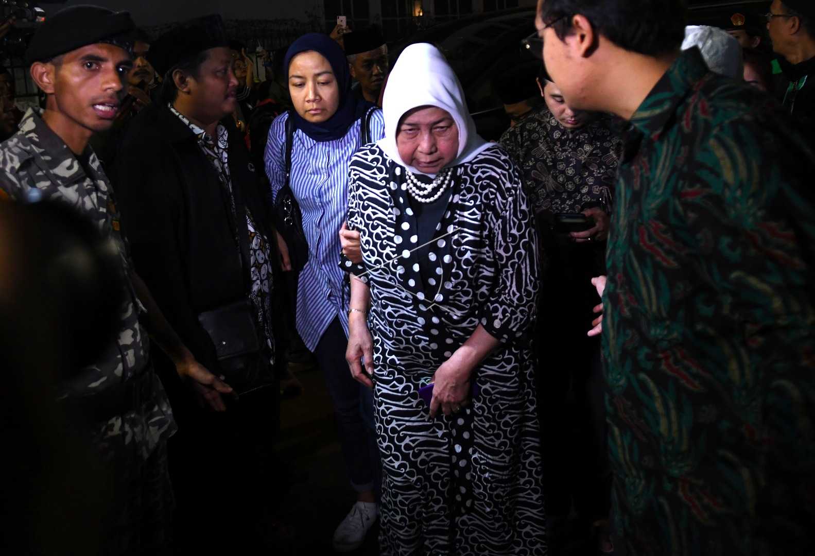 Sejumlah kerabat dan rekan berdoa di depan jenazah KH Salahuddin Wahid atau Gus Sholah di Mampang Prapatan, Jakarta, Senin (3/2/2020) dini hari. Ulama yang juga adik kandung Presiden ke-4 RI Abdurrahman Wahid atau Gus Dur itu meninggal dunia usai kritis setelah operasi jantung di Rumah Sakit Jantung Harapan Kita, Jakarta. ANTARA FOTO/Aditya Pradana Putra/wpa.