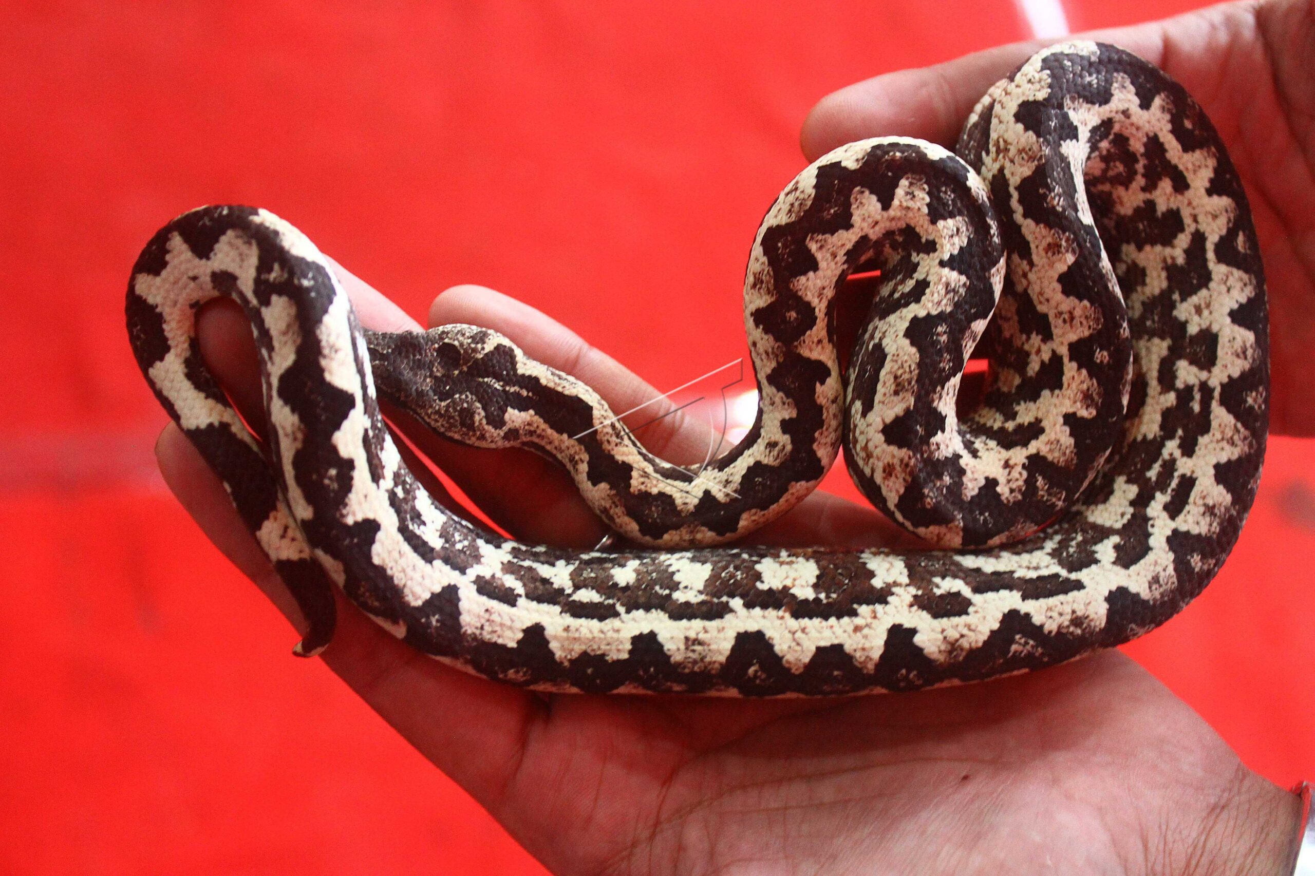 Ular Boa Pohon (Candoia Carinata) yang merupakan satwa endemik dari Papua dalam Kontes Reptil Nasional di Predator Fun Park, Batu, Jawa Timur, Minggu (7/1/2018). ANTARA FOTO/Ari Bowo Sucipto/dw/pras.