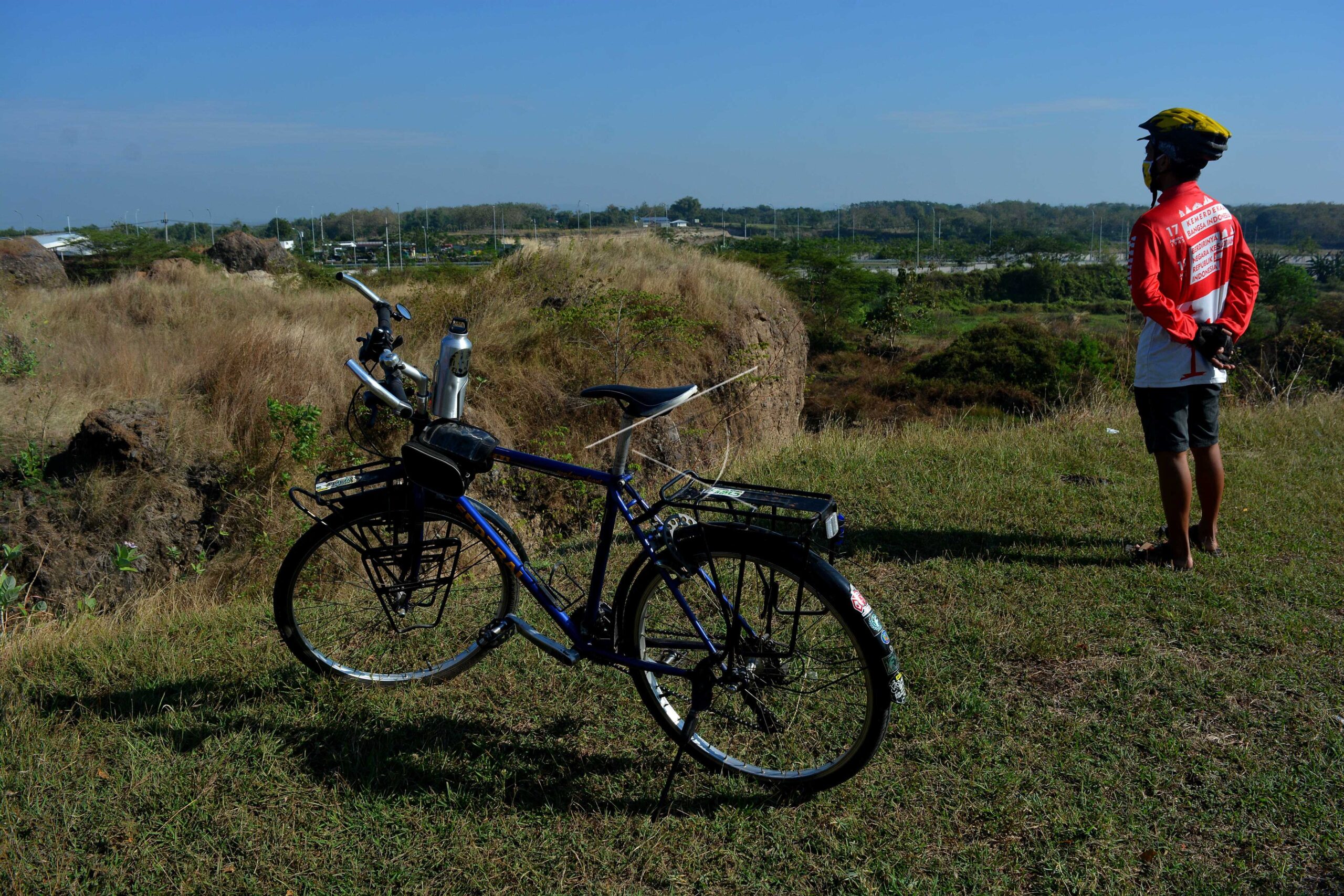 Penghobi sepeda melihat bekas galian tambang usai menggelar upacara bendera peringatan Hari Kemerdekaan ke-75 Republik Indonesia di atas bukit bekas galian tambang di Banjardowo, Kabupaten Jombang, Jawa Timur, Senin (17/8/2020). Upacara di bekas galian tambang tersebut sebagai bentuk keprihatinan kerusakan lingkungan akibat maraknya galian tambang di Kabupaten Jombang serta tidak adanya upaya reklamasi lahan bekas […]