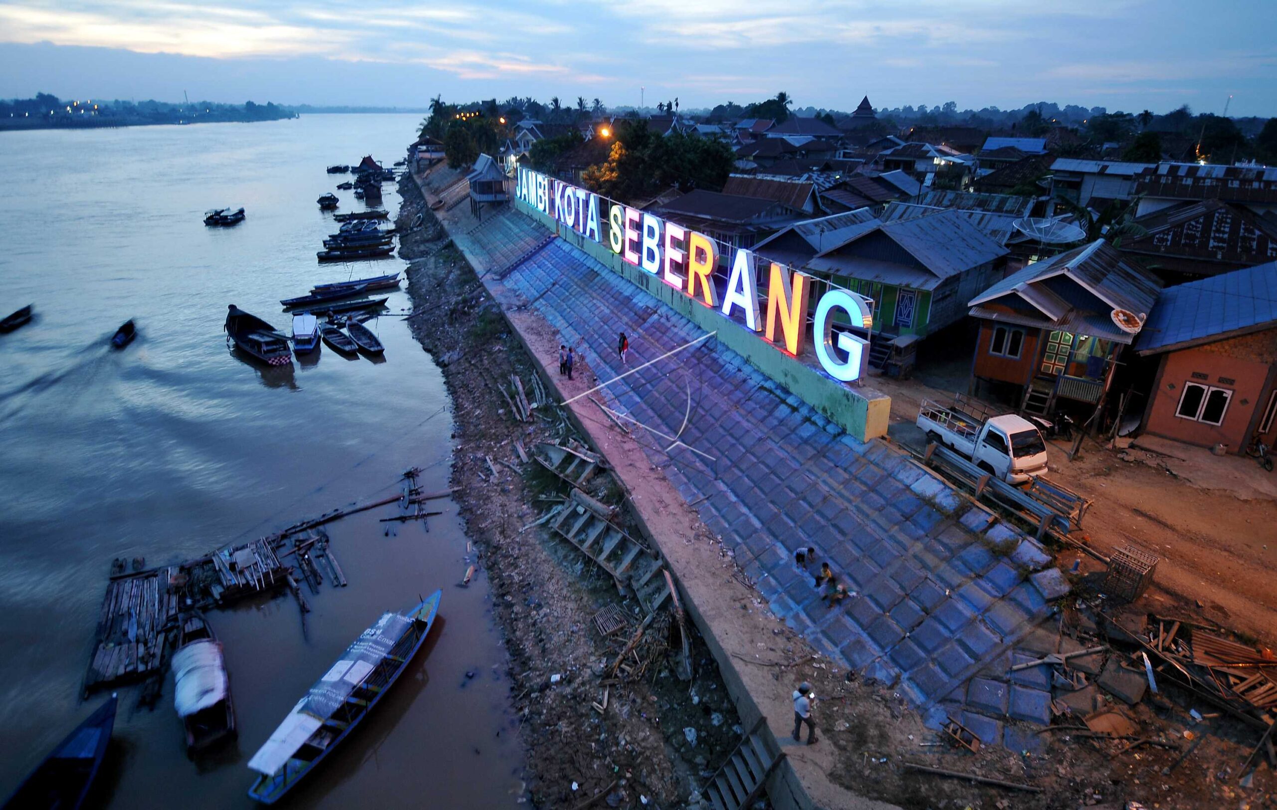 Sejumlah perahu berada di kawasan wisata perkampungan Arab Melayu di tepi Sungai Batanghari, Jambi, Minggu (1/1/2017). ANTARA FOTO/Wahdi Septiawan/dw/tom.