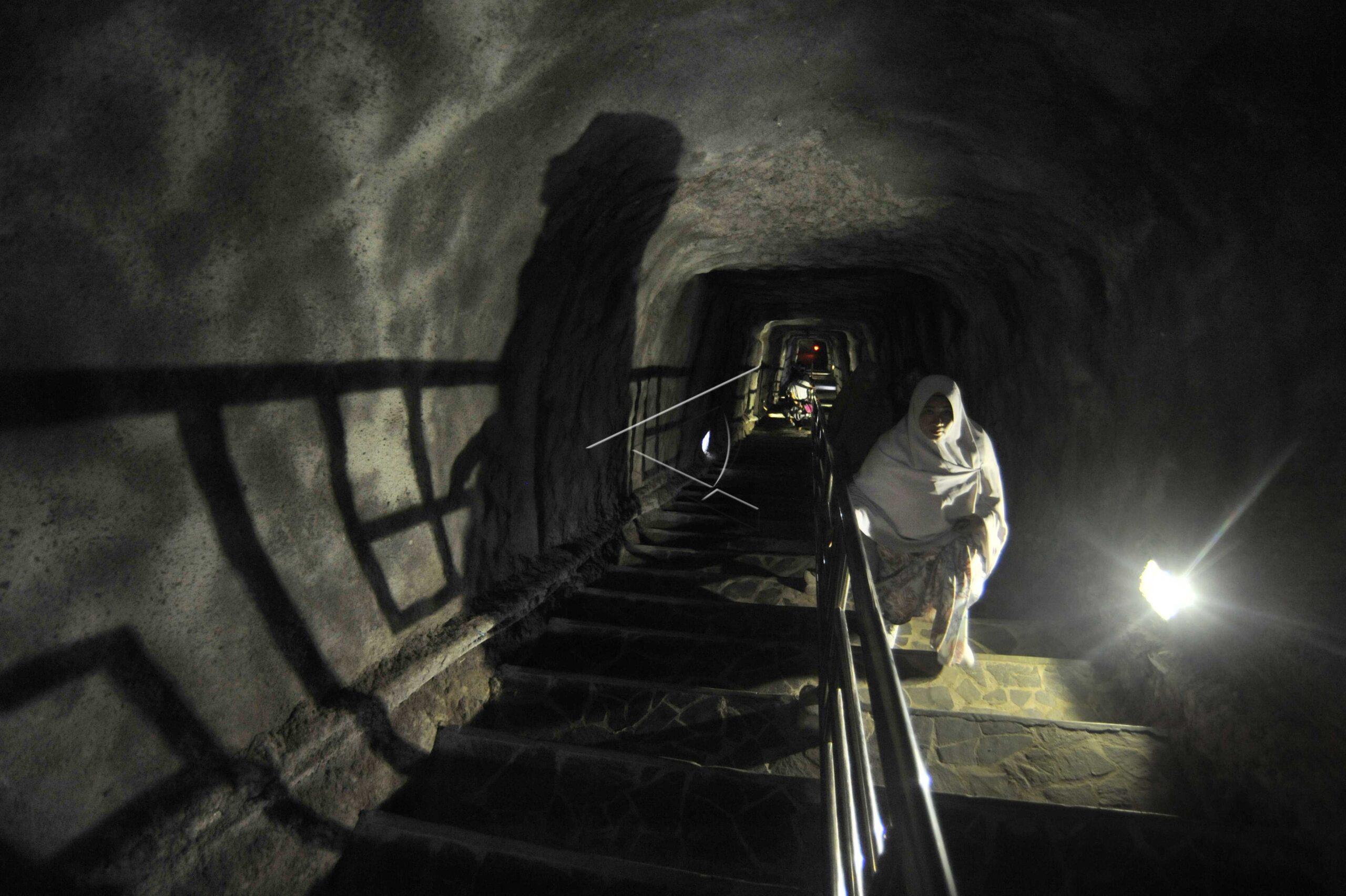 Pengunjung berjalan di objek wisata Lobang Jepang, Bukittinggi, Sumatera Barat, Sabtu (12/5/2018). Lobang Jepang merupakan terowongan yang dibangun tenaga kerja paksa (romusha) yang dulunya digunakan sebagai tempat penyimpanan perbekalan dan peralatan perang tentara Jepang, dengan panjang terowongan mencapai 1400 meter dan berkelok-kelok serta memiliki lebar sekitar 2 meter. ANTARA FOTO/Iggoy el Fitra/foc/dw.